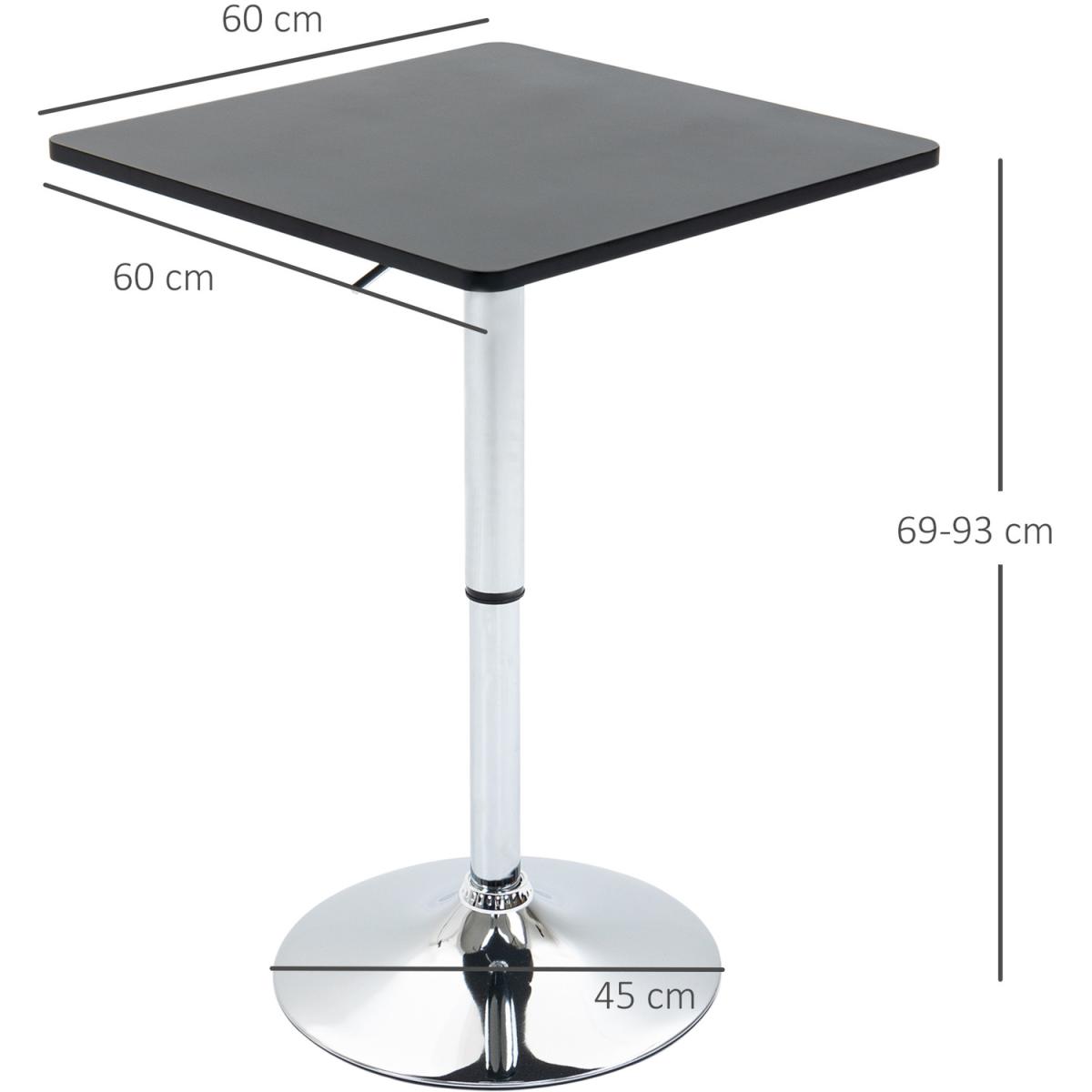 This bar table uses polished steel for the frame with a large round base, which not only ensures it keeps steady and balanced, but gives it an overall beautiful and sleek look. The frame is adjustable between 82cm and 103cm so you can set to a level which is most comfortable. It comes complete with the square table top for a flat and reliable surface to use.