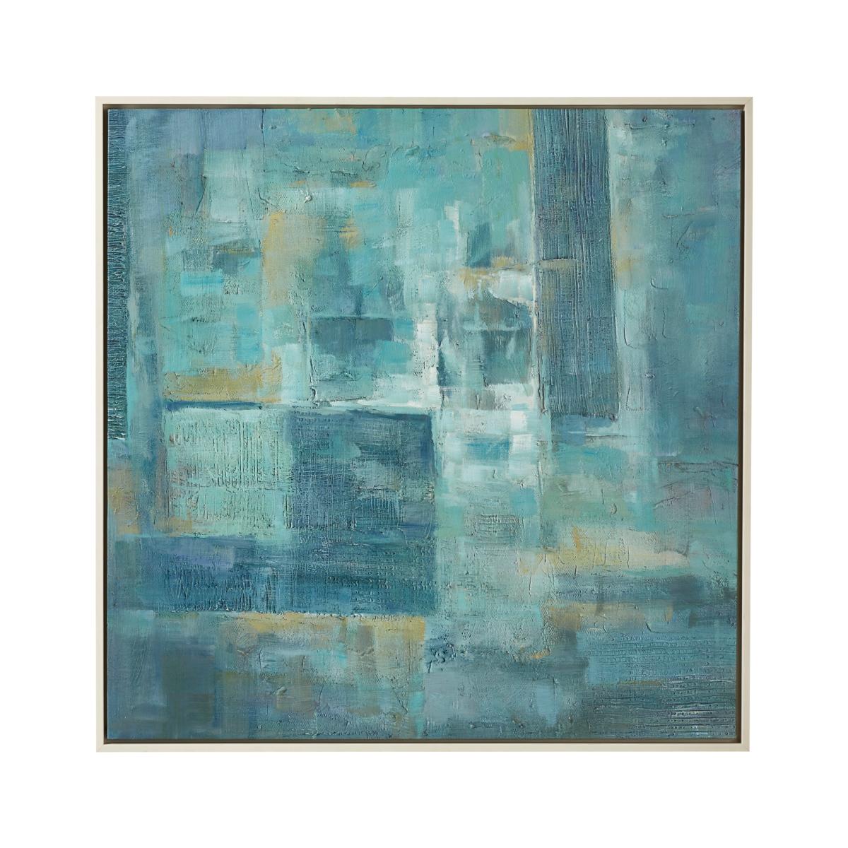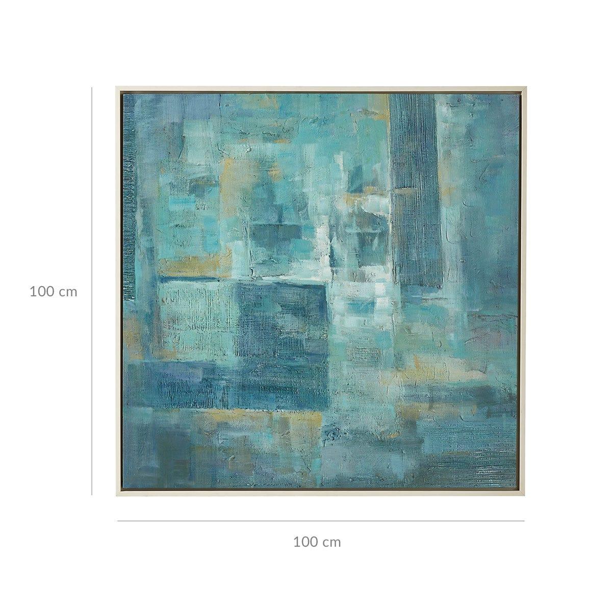 This bold oil on canvas is created using impasto, a technique favoured by Van Gogh, where the paint is layered so thickly that you can see the intricacies of each brush stroke and a textured effect is created. With a cool palette of blues and greens, and a dash of yellow, this piece lends contemporary artistic appeal wherever it is placed. Modern Impasto Landscape Oil Painting - Seagreen