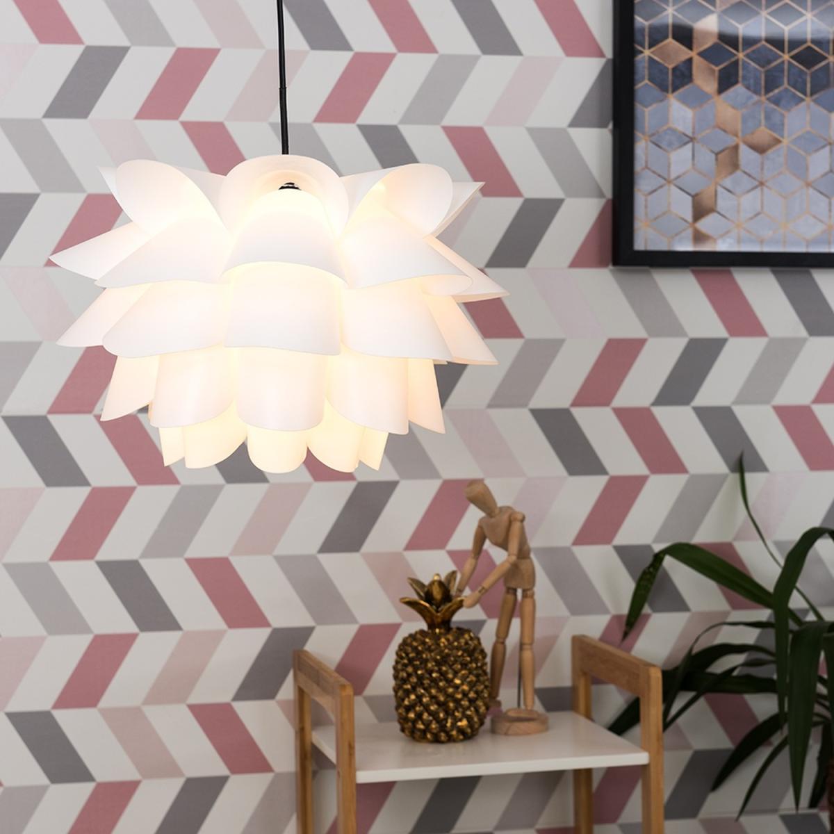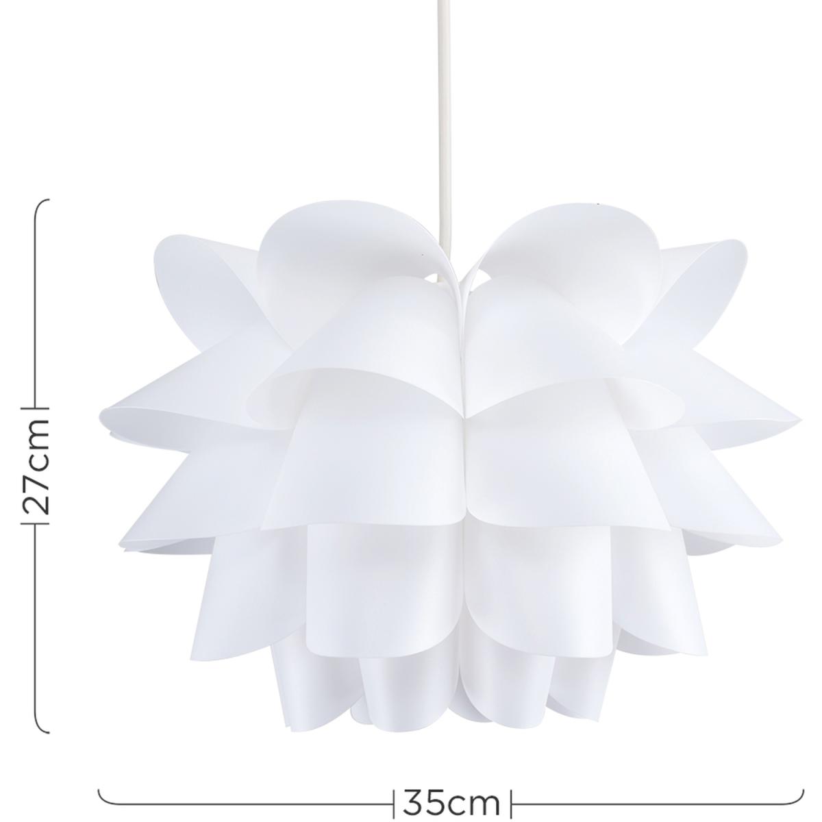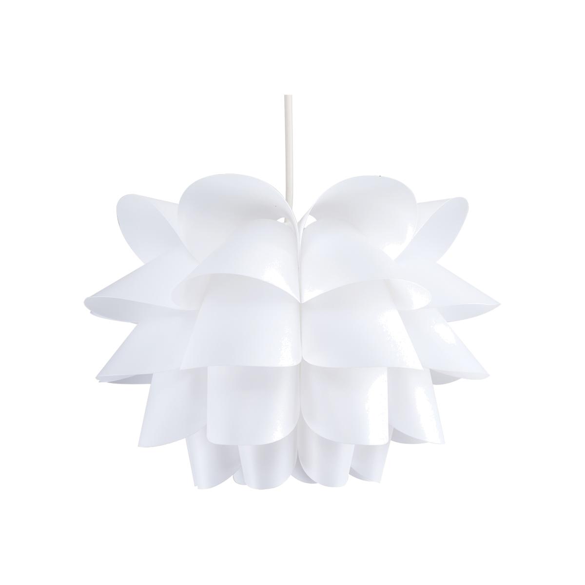 Modern ceiling pendant light shade in white finish. Inspired by the classic artichoke style designer ceiling light. Ideal for a lounge, dining room, bedroom or hallway. Easy to fit, simply attaches to your standard ceiling light socket - so electrical installation required.