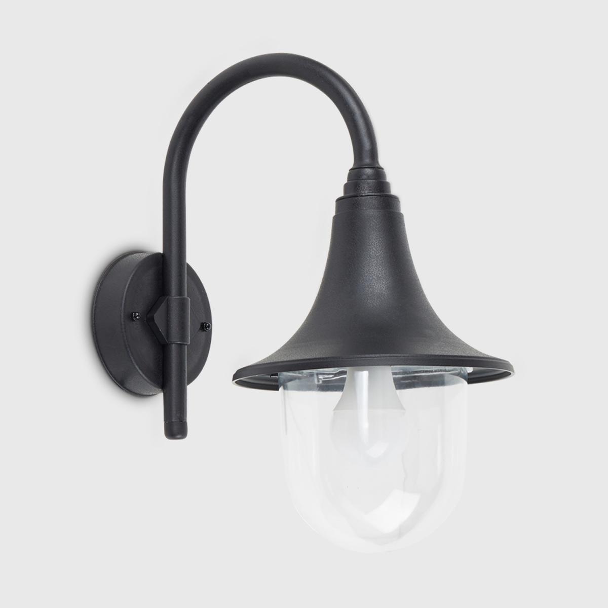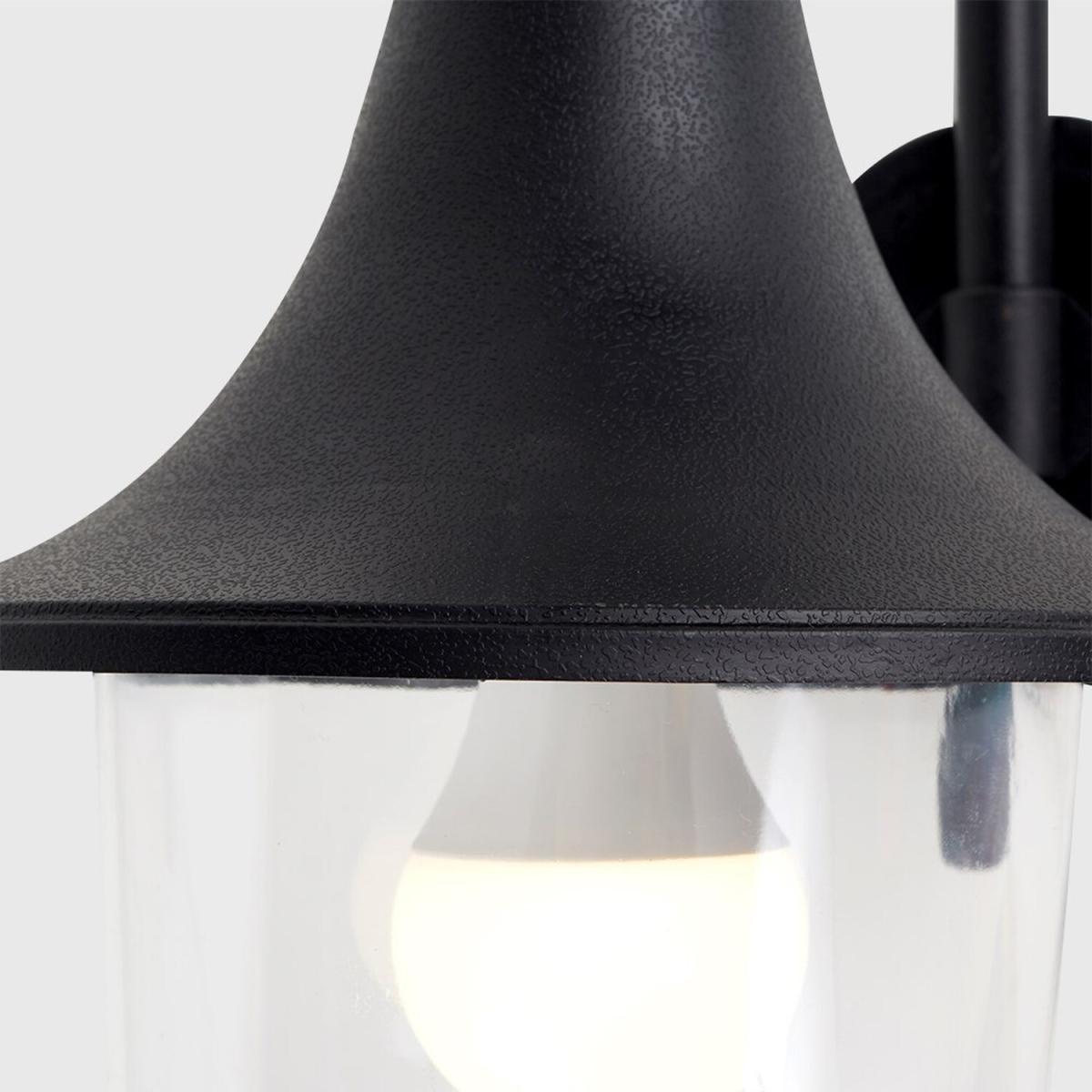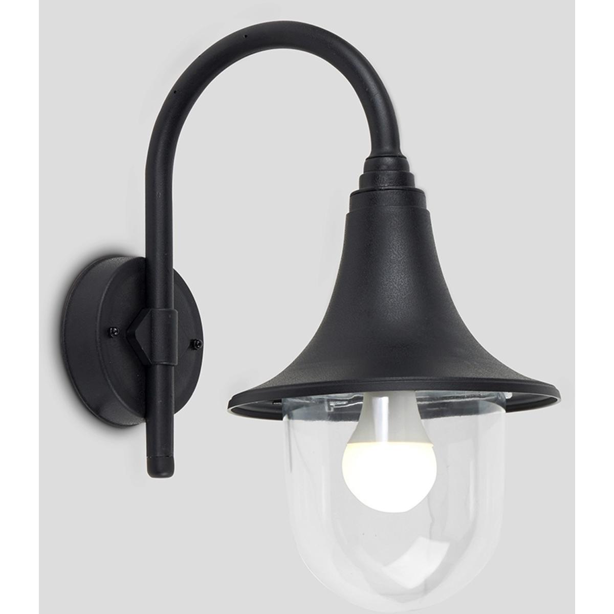 Outdoor traditional style fishermans wall light lamp in a beautiful black finish. A bulb is not supplied with this item. Constructed from durable weather resistant resin with clear shade. Perfect for lighting gardens, patios, courtyards, driveways, porches, conservatories or indoor use. IP44 rated - fully certified for outdoor installation.