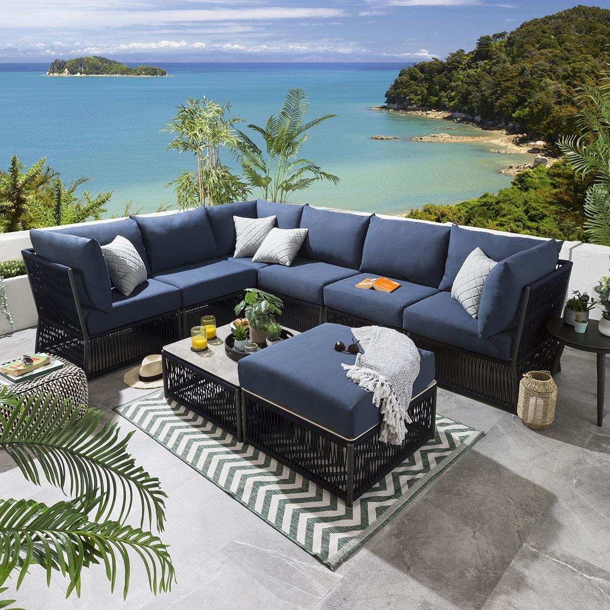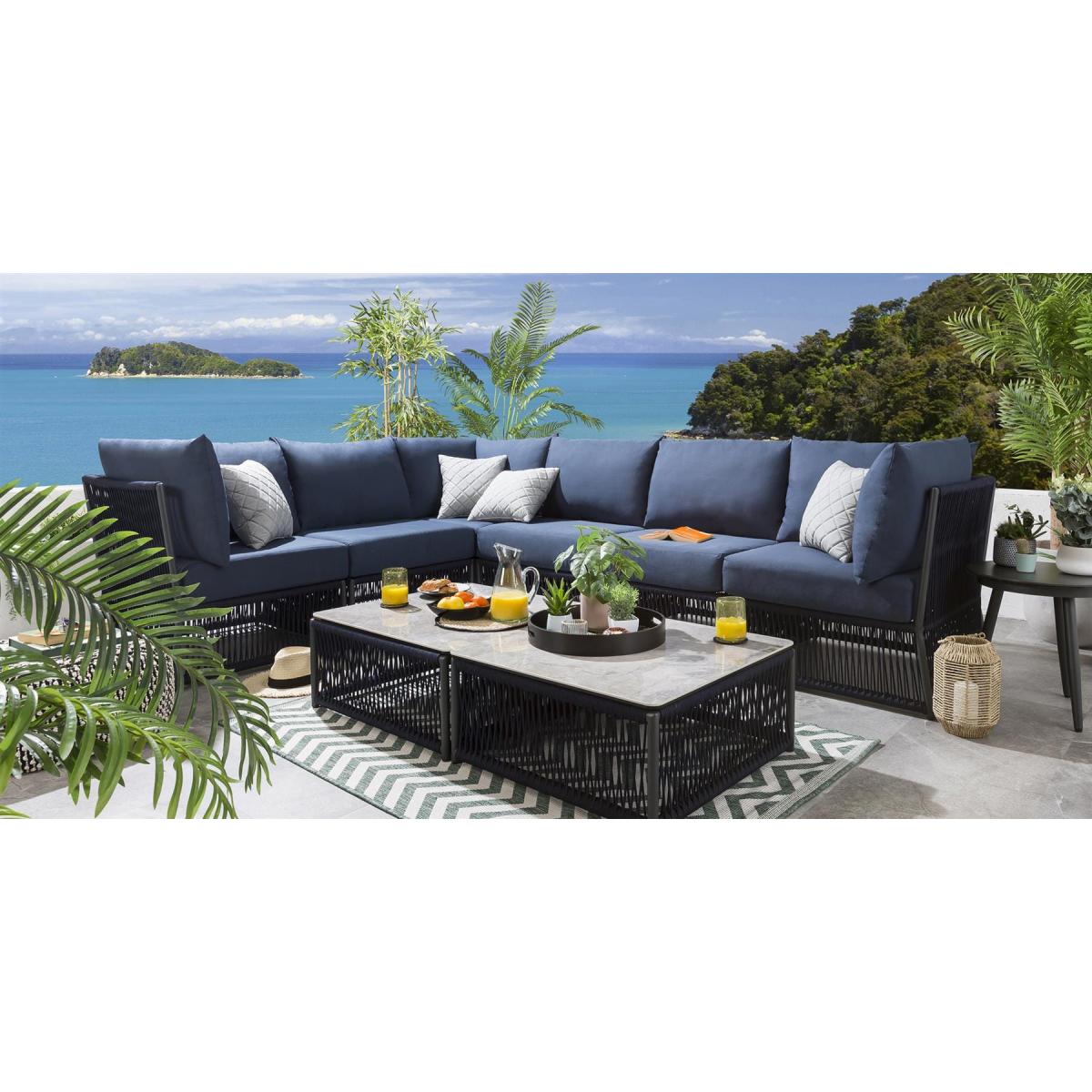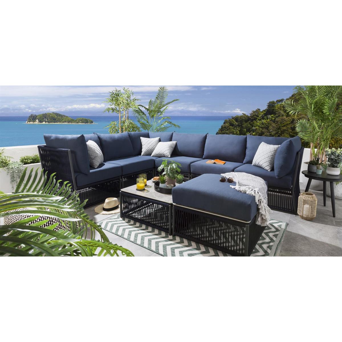 The Quatropi Luxury Cole Modular Outdoor Sofa Range is the perfect choice for outdoor relaxation and entertaining. Featuring luxurious deep cushions, this range of outdoor sofas is designed for maximum comfort and style. The frames are made from lightweight, durable aluminum, which is corrosion-resistant and perfect for withstanding the elements in any season. The sofas come in two color options ' blue or green ' and feature a 5-year warranty. The fabric used is weather-resistant and will remain looking good for years to come, even in the harshest climates. The cushions are filled with a high-grade foam for maximum comfort, and come with winter and rain covers for added protection. The Quatropi Luxury Cole Modular Outdoor Sofa Range is the perfect choice for anyone looking to create a stylish and comfortable outdoor seating area. The Cole Modular Outdoor Sofa Range from Quatropi is perfect for al-fresco dining, entertaining, or simply relaxing in the garden. The modular design and range of sizes make it easy to configure a seating area that suits your needs, and the contemporary styling ensures that it will look great no matter what the occasion. W218cm D288cm H75cm Set Includes 3 x corner sections, 3 x middle sections, 2 x coffee table/footstool Free Winter Cover