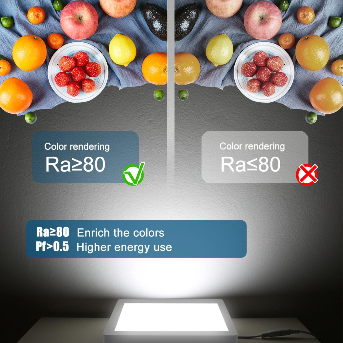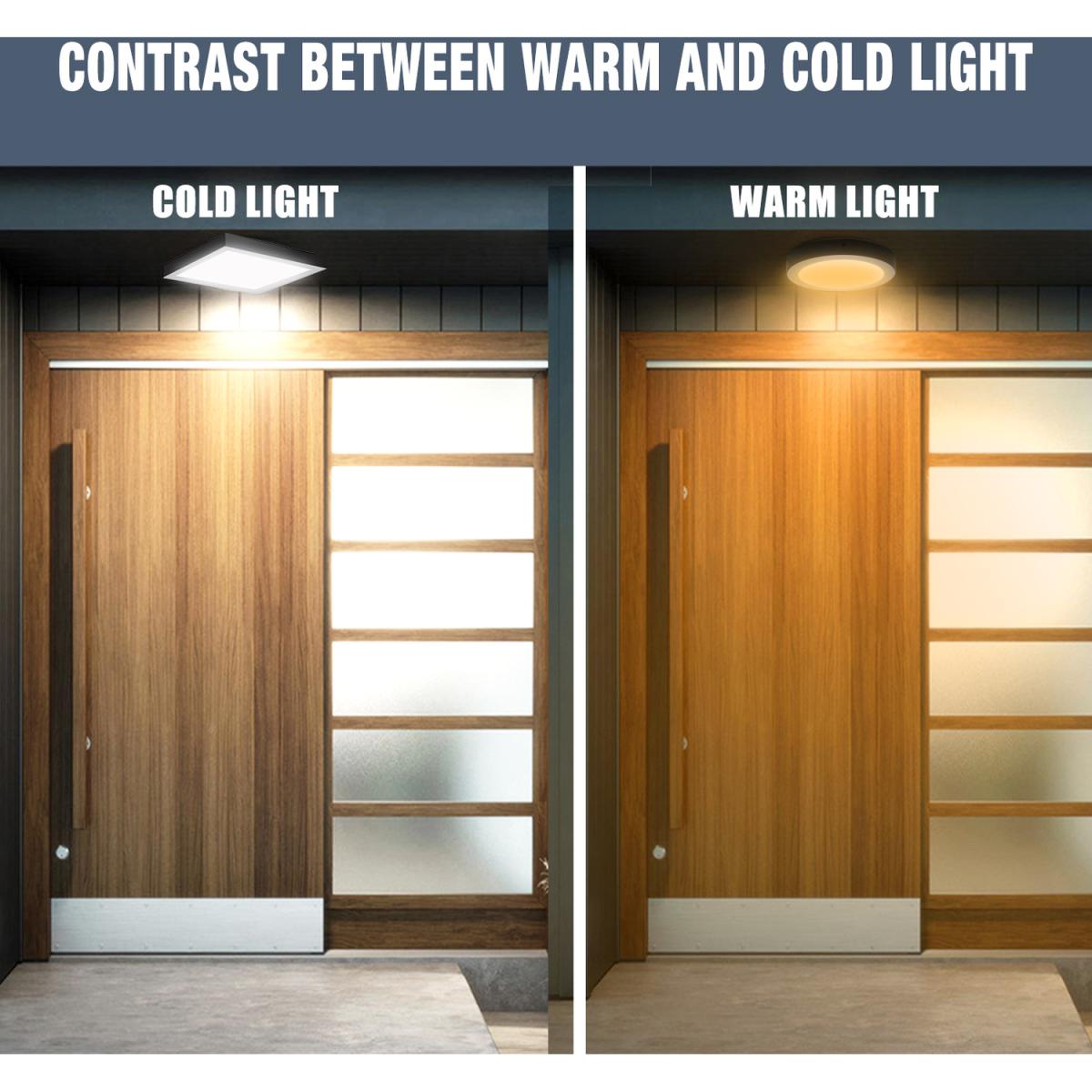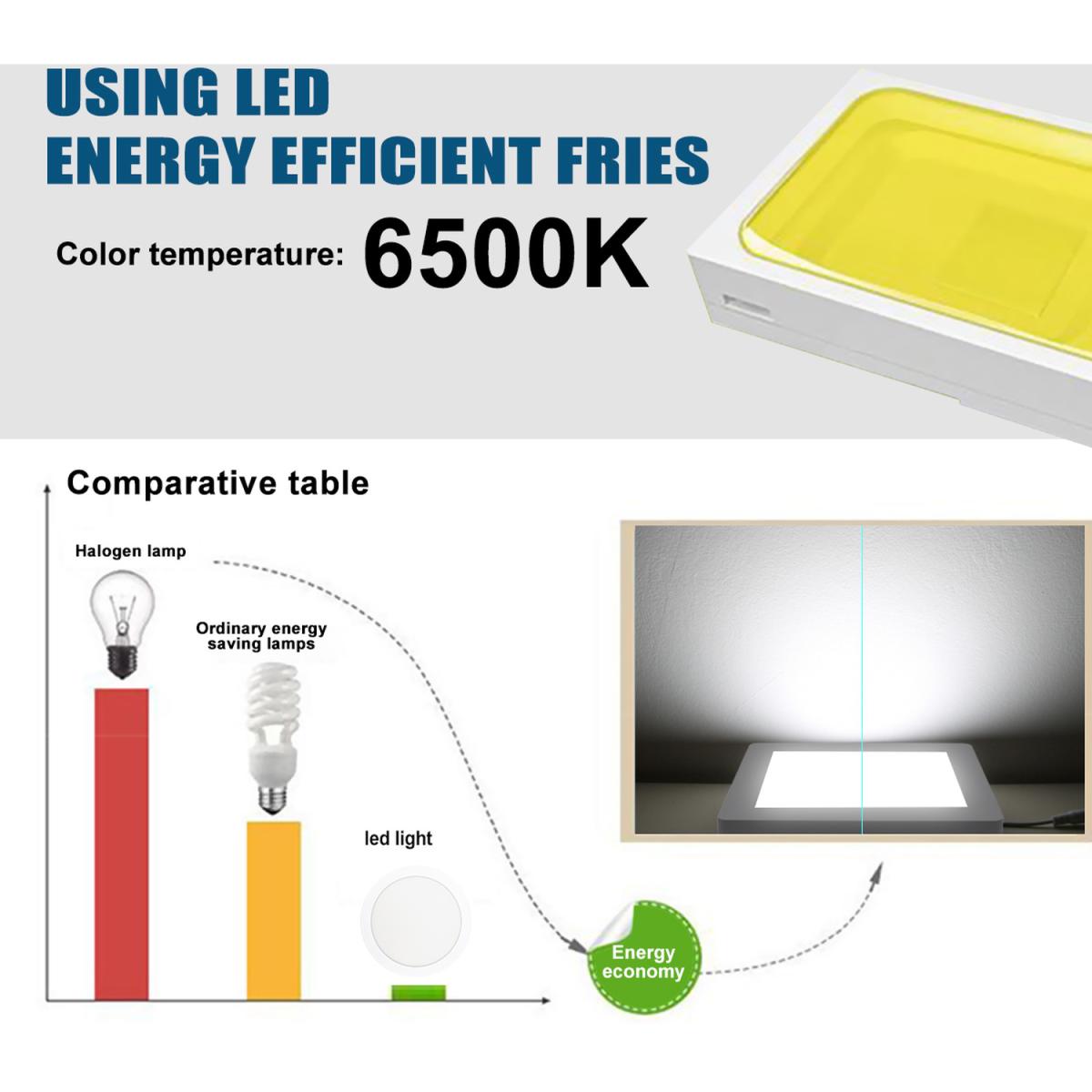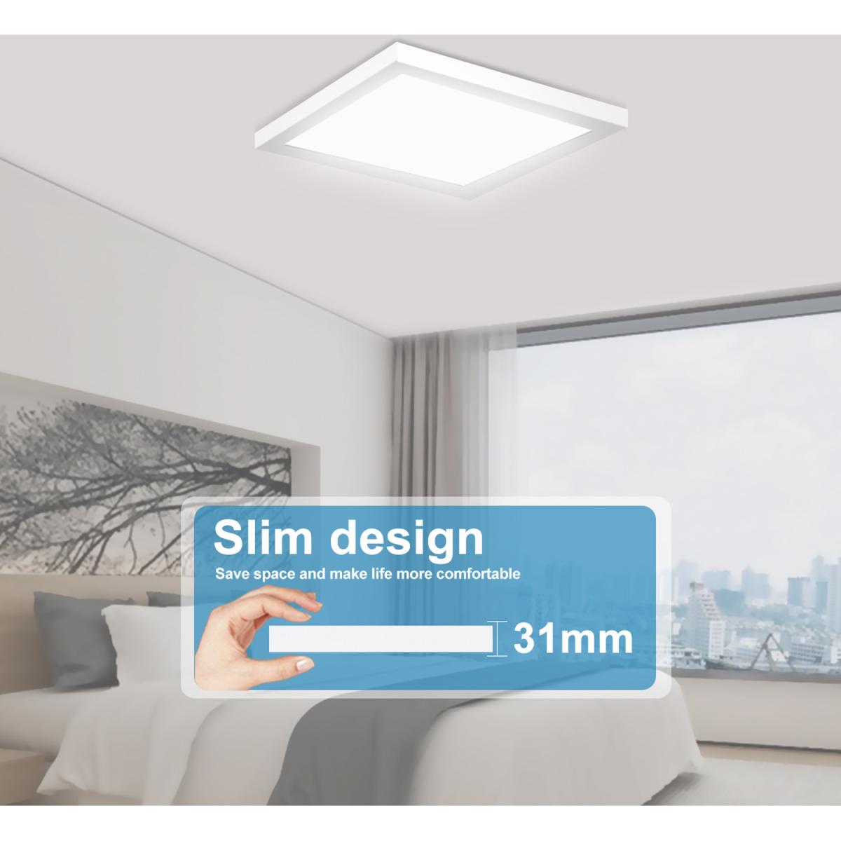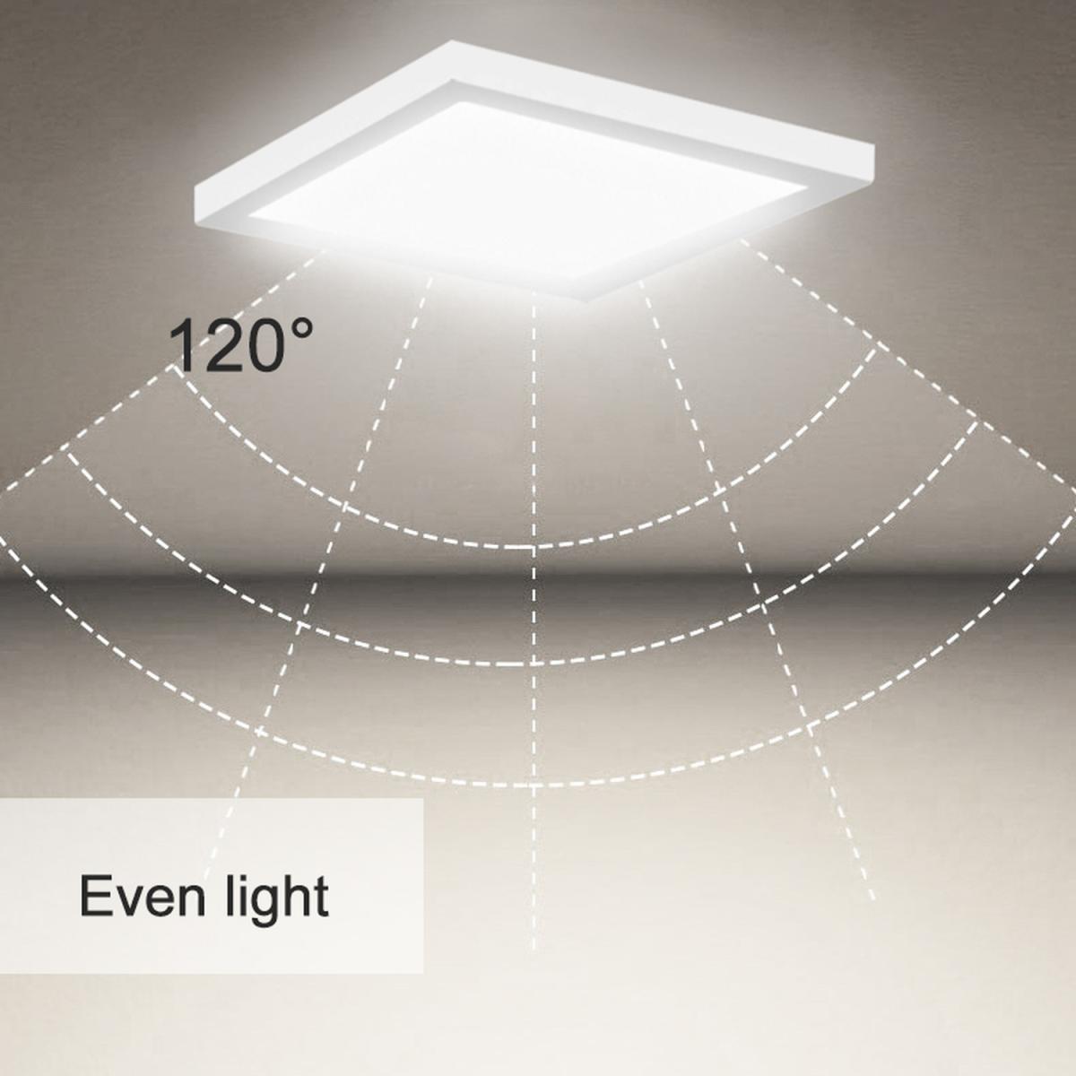 Energy Saving 18W Modern LED ceiling light Square Panel from Extra. Star. Equivalent to the traditional 144W incandescent bulb, and the extremely long service life can reach up to 25,000 hours, which enables to help you effectively save more than 80% of electricity costs. These 18W LED Ceiling Lights are manufactured with energy-efficient LED chips to provide stable and reliable performance. 1350L M 6500. K Daylight ensure enough brightness in hallway or stairs, perfect replacement of 144W traditional incandescent. Comes with an integrated LED driver and a complete mounting kit making installation effortless. Users can easily install LED infrared security lights on the ceiling or wall with enclosed screws within 5 minutes. With a slim and decent size, this square ceiling light is neat and lightweight. Provides a uniform light without flicker, protecting your eyes from glare lighting.