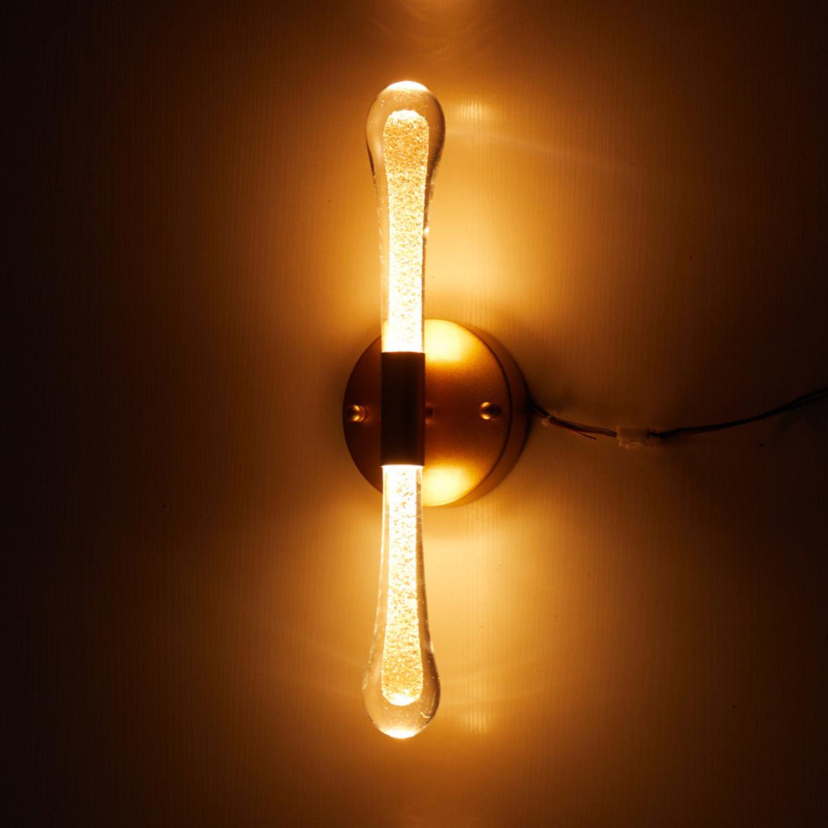 Elevate your space with this elegant 2-light sconce, featuring golden accents and a stunning crystal design. It adds luxury and creates a warm, inviting atmosphere that makes a lasting impression. The bubble crystal rods of the lampshade offer exceptional light transmission, and when lit, they reflect a starry sky, enhancing the romantic ambiance. Equipped with high-quality COB LED chips, this sconce provides stable, efficient illumination with a 3000. K warm yellow light and a longer lifespan than traditional bulbs.