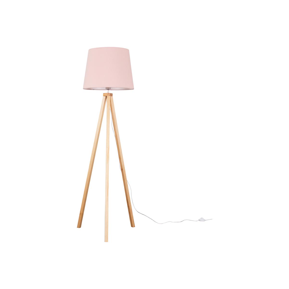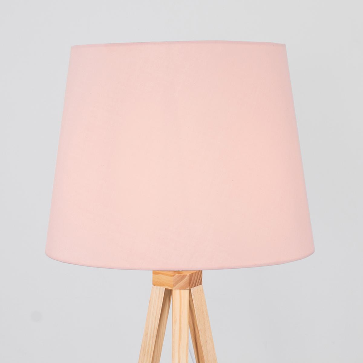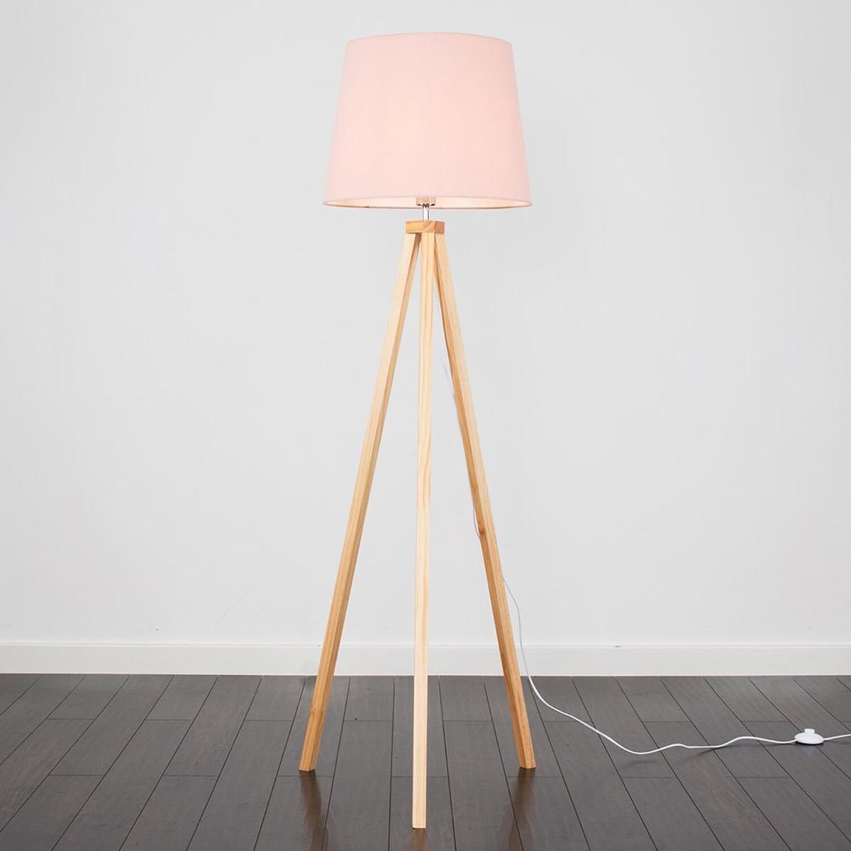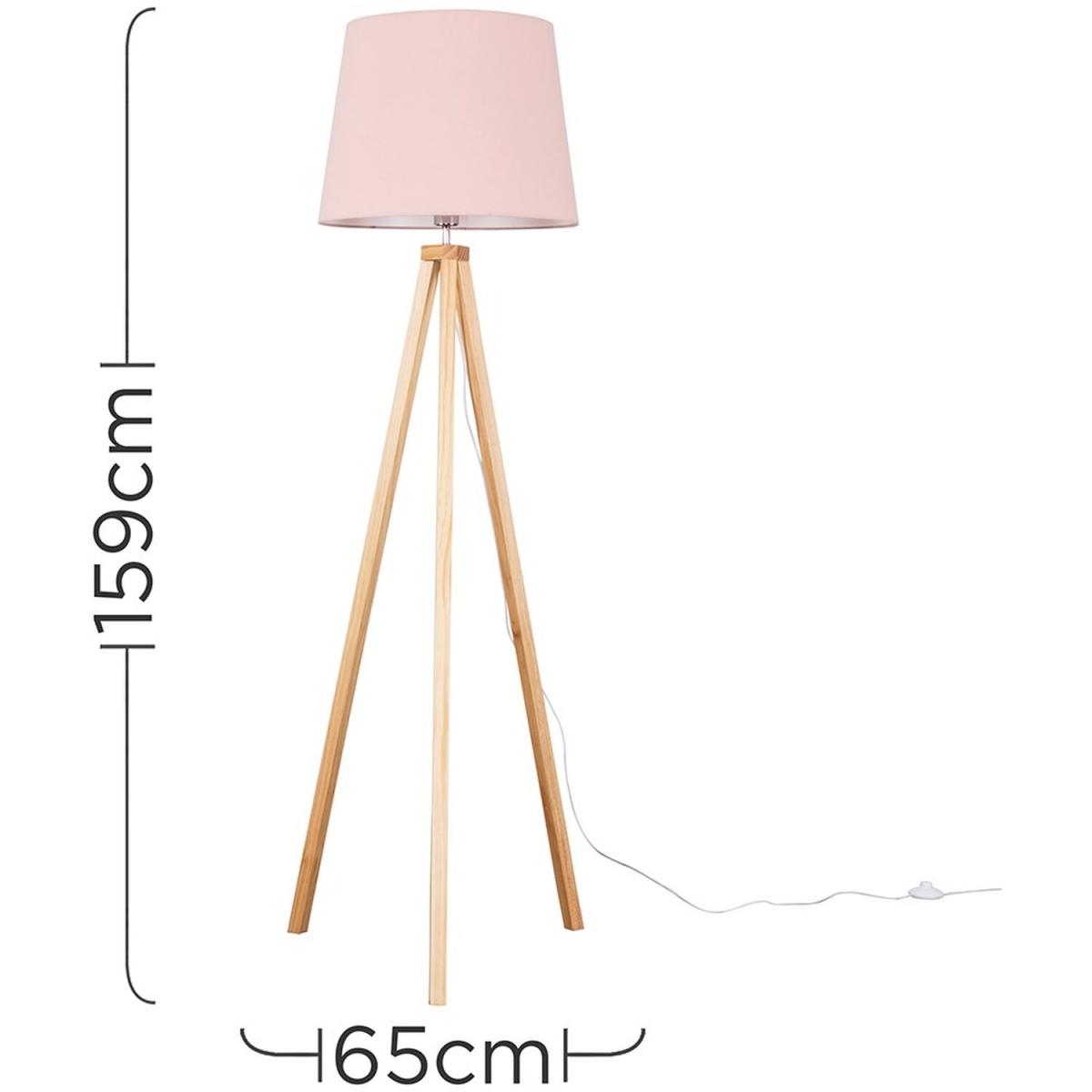 Modern tripod style floor lamp in a light wood finish, which features an in-line onoff switch for easy use. Complete with an extra large pink fabric tapered light shade. Floor lamps are a great way to bring additional lighting to a room or you can use them reduce your main light output, and create a more relaxing moodatmosphere.