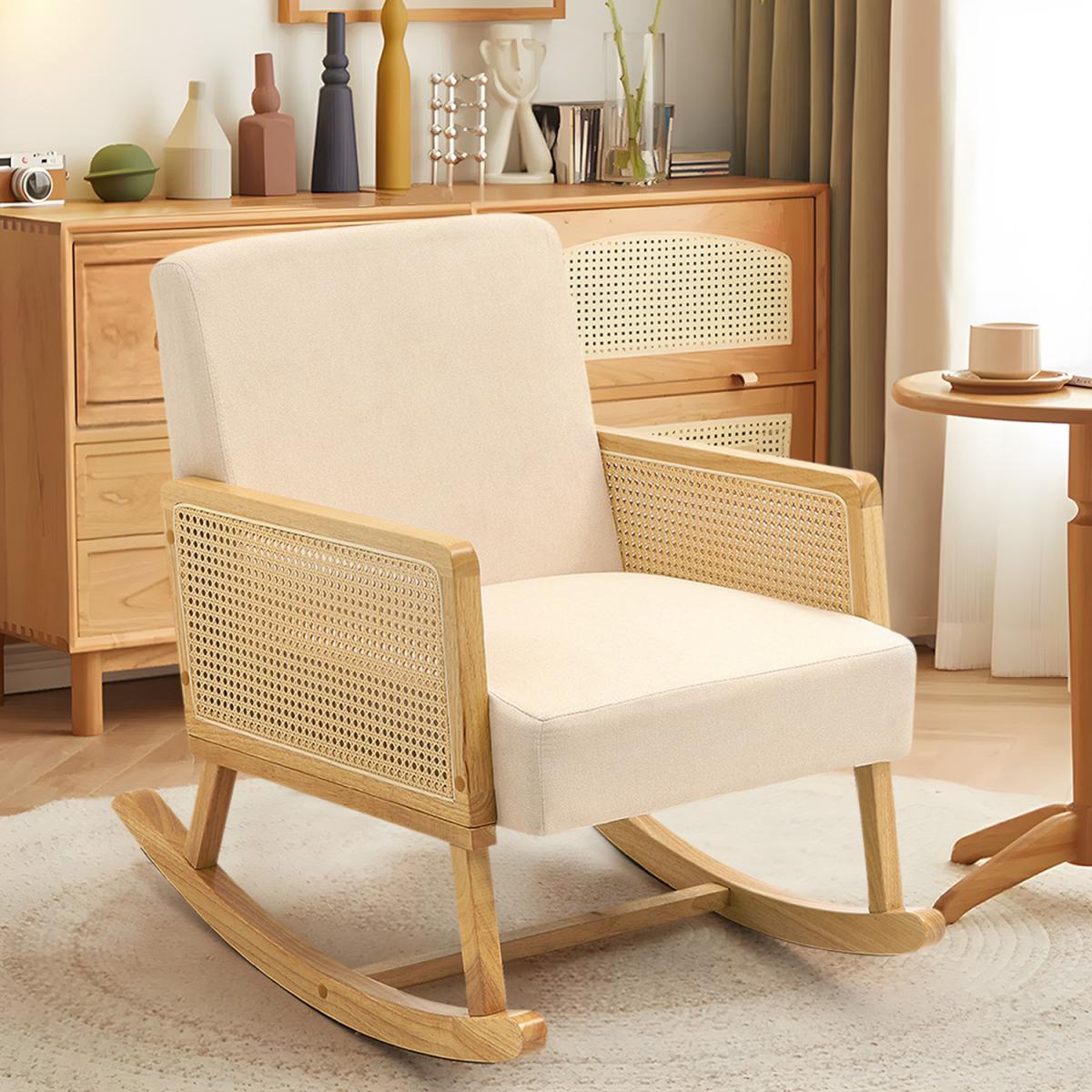 Experience the perfect blend of classic craftsmanship, safety, and comfort with the Livingandhome Linen Wooden Rocking Chair. This versatile piece is equally at home in the nursery, living room, or on your covered outdoor spaces. Crafted from solid wood using time-honored techniques, this rocking chair is the epitome of durability and stability. It's not just a piece of furniture, it's a testament to quality and tradition. The incorporation of rounded edges ensures collisions are kept at bay, making it an excellent choice for families. With a strong focus on ergonomics, this chair delivers an unrivaled level of comfort. The handwoven rattan handrests not only provide a unique touch but also offer breathability, enhancing your experience. The seat cushion and backrest are generously padded with dense sponge, providing an exquisite seating experience. This rocking chair isn't just functional, it's a daily decorative accent that elevates your living space. Imagine coming home after a long day, sinking into this chair, and letting your worries melt away. It's your personal "recharge station." Close your eyes, let the gentle rocking motion soothe you, and feel the fatigue of the day dissipate.
