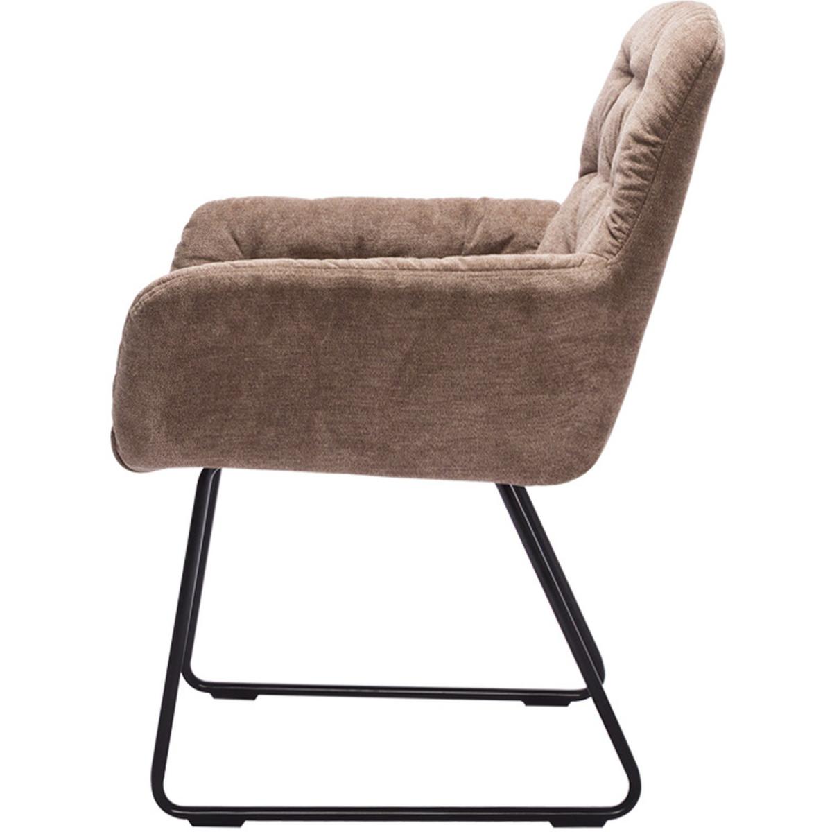 I love this armchair for its versatile and understated chic-its warm brown upholstery makes it easy to incorporate into a variety of interiors, from modern to rustic. The tufted back adds subtle texture, while the sleek black metal legs give it a contemporary edge. It works particularly well in living rooms, home offices, or cozy reading corners. To style it effectively, consider pairing it with a textured throw or a patterned cushion to add colour and personality. Keep the surrounding decor simple and neutral, allowing the chair to be a statement piece without overwhelming the space. It’s practical for both everyday lounging and as an accent to complement other furniture pieces.
