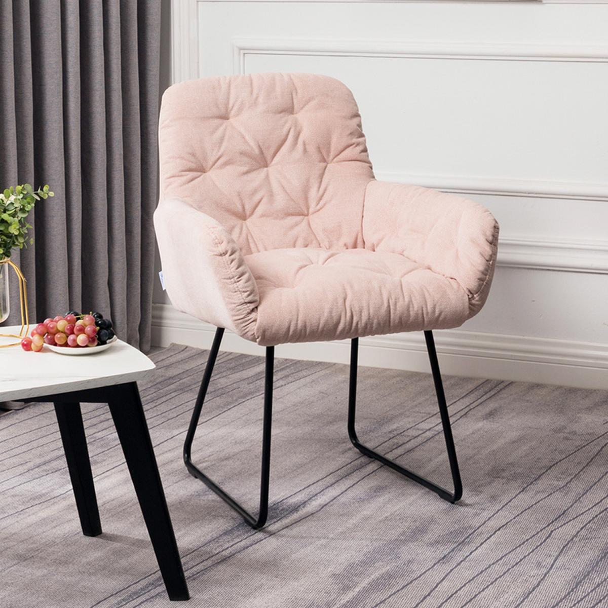 Bright up your space with an exquisite lounge chair. The chair features high-quality breathable fabric upholstery and has ruched, buttoned deco and metal black legs, giving them a comfortable appearance. Simple and modern design can easily match any style of furniture, suitable for both home and office use.