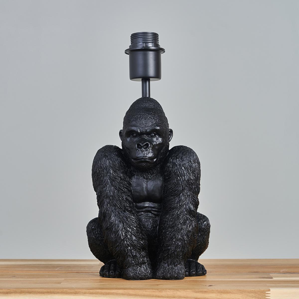 This table lamp is everything you need to turn your ordinary space into an example of modern lighting. Featuring a Gorilla sitting in a matt black polyresin finish, this unique lamp is perfect for adding a retro style to your home. Complete with an in-line onoff switch for easy use. This lamp can be paired with a shade of your choice, creating a real style statement and complete your living space look. Please note This is NOT a toy. Not suitable for children under 14 years old.