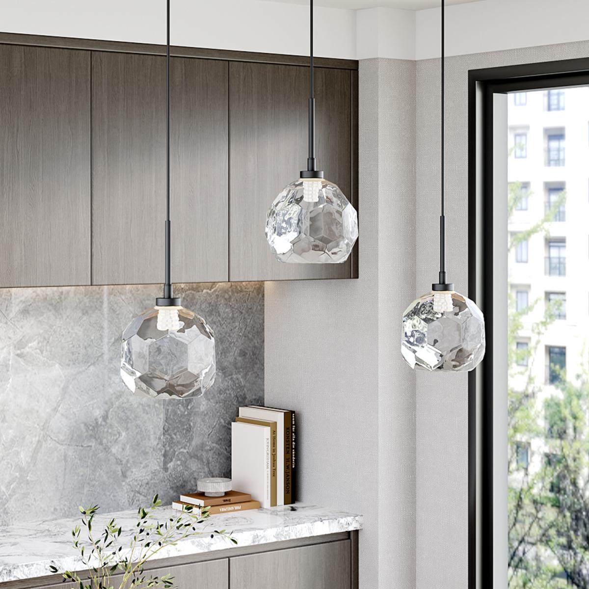 This Livingandhome pendant collection gives your home modern glamour and sophistication. The clear glass shades, reminiscent of a clear, placid lake, are contrasted with black hardware,add a glowing accent to your kitchen, bar, dining room, entryway, or bedroom. This simple, clean style mini pendant complements well with modern, farmhouse, or industrial decor.