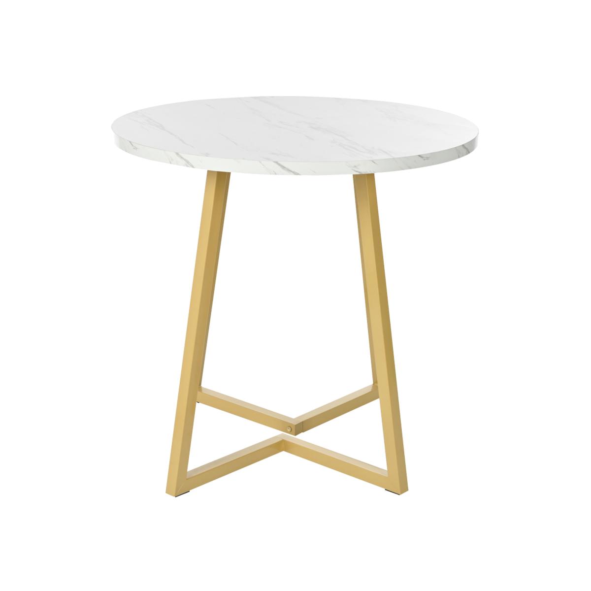 High-quality MDF tabletop with realistic marble veneer. With high-quality MDF board and exquisite marble veneer, this coffee table not only looks elegant, but also has the characteristics of lightness and durability, adding a touch of luxury to your space while being more affordable. Modern gold metal frame, stable and durable. The metal frame is treated with a high-temperature spray process to present a stylish golden luster, which not only complements the marble tabletop, but also provides stable support, durable and suitable for various modern home styles. Multi-purpose design, adaptable to a variety of scenarios. Whether used as a coffee table, side table or small dining table, this multi-functional round table can bring comfortable layout options to the living room, bedroom or balcony, making your space more flexible and changeable. pace-friendly round design. The round tabletop design is compact, small and practical, especially suitable for small apartments, apartments or dormitories, and can provide a spacious countertop in a limited space, which is very suitable for the efficient use of urban life. Convenient installation and easy cleaning. Equipped with detailed installation instructions, the simple installation allows you to assemble and use it easily. The surface is smooth and waterproof, easy to care for, and you can keep the table clean and new with just a light wipe with a damp cloth.