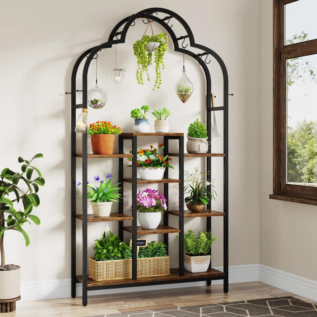A modern metal shelving unit display designed to enhance your space with a sleek and contemporary look. Featuring multiple open shelves, this unit provides ample space for showcasing books, decorative items, and plants. The sturdy metal construction ensures durability and stability, while the minimalist design adds an industrial touch to any room. Perfect for living rooms, offices, or kitchens, this shelving unit is not only functional but also serves as a stylish focal point, ideal for those looking to combine practicality with modern aesthetics.