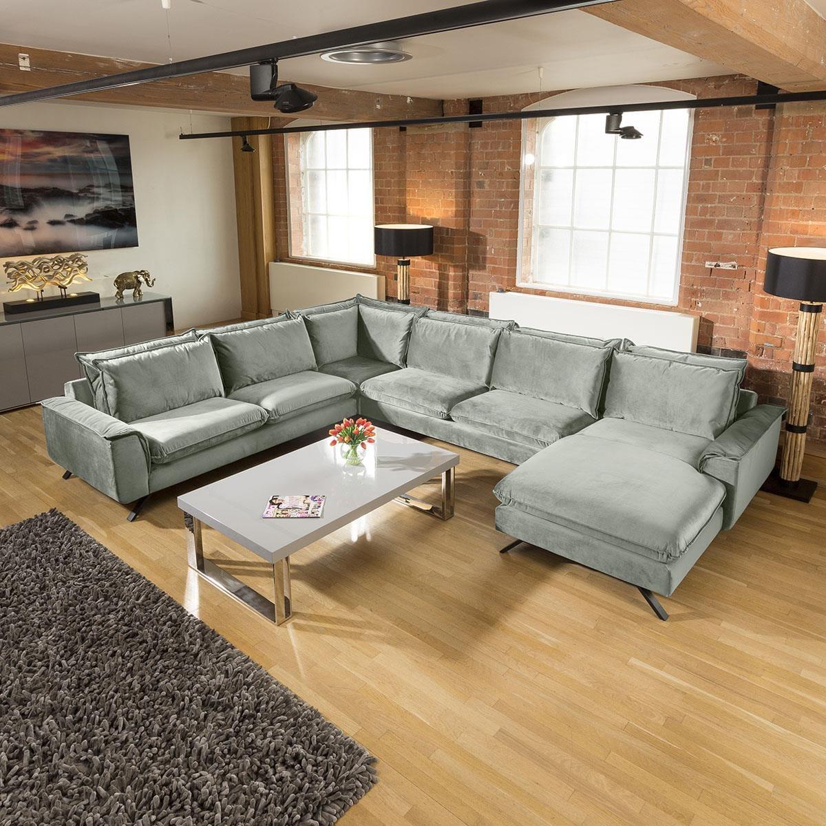Designed to captivate, the Ellie modular 6-seater U shape corner sofa redefines your living space with its sleek and avant-garde design. With over 100 premium fabric options to choose from, you to tailor this sofa to your exact preferences. Measuring 386cm x 300cm, it effortlessly accommodates family and friends. Crafted with innovation in mind, the Ellie modular sofa boasts an innovative double back cushion design, providing unparalleled support while exuding a distinctive aesthetic appeal. The unique construction ensures both comfort and style are seamlessly blended, offering a truly immersive lounging experience. Elevating the design further, our sofa stands gracefully off the ground on sleek angled black metal legs, creating an airy and spacious feel in any room. Unleash your creativity with over 100 premium fabric options to choose from, enabling you to tailor this masterpiece to your exact preferences. Each fabric has been meticulously selected to complement the ultra-modern design, making your sofa a true reflection of your personal style. Sink into deep cushioning that envelops you in a cloud of relaxation, making every moment spent on this sofa a rejuvenating escape from the ordinary. Our Modular 6-Seater U Shape Corner Sofa harmonises sophistication with comfort, presenting an iconic centerpiece that transforms your living space into a contemporary haven. Experience the pinnacle of modern furniture design and bring home the future of relaxation W386cm D300cm H90cm We can design the sofa to meet your exact size requirements - call the team for a virtual sofa design All dimensions are approximate due to fabric differences. Please allow tolerance of +/- 5cm to any direction