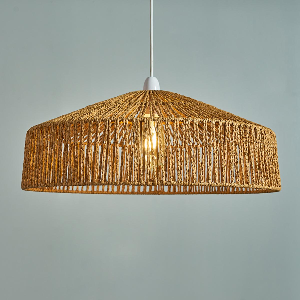 Tap into your Boho side with our vintage-inspired rattan pendant shade Inspired by kitsch 70s styling, the Elcano pendant shade is a natural and earthy update on the retro metal pendant Crafted from woven rattan, this pendant shade is a perfect East meets West ceiling shade We love to hang the Elcanco, or a pair, low, over a dining table for a dreamy finishing touch to a Japani-inspired look For a more Scandi feel, the Elcano is perfect for bringing natural texture to a room, so style alongside contrasting textures and shapes in a neutral colour palette for a down-to-earth mood Requires one 40W BCB22 bulb or LED equivalent