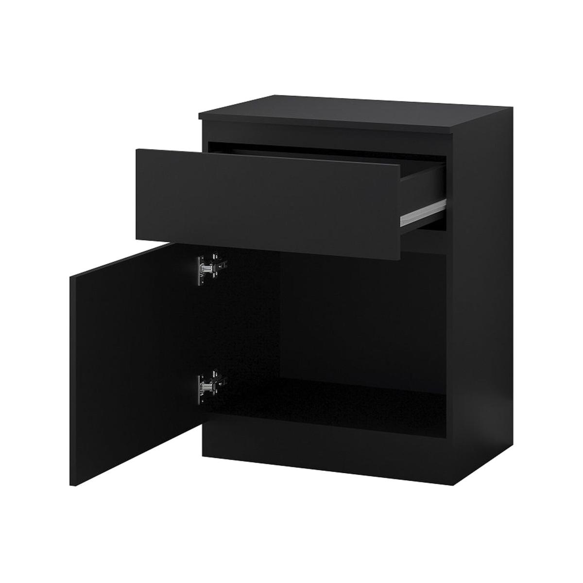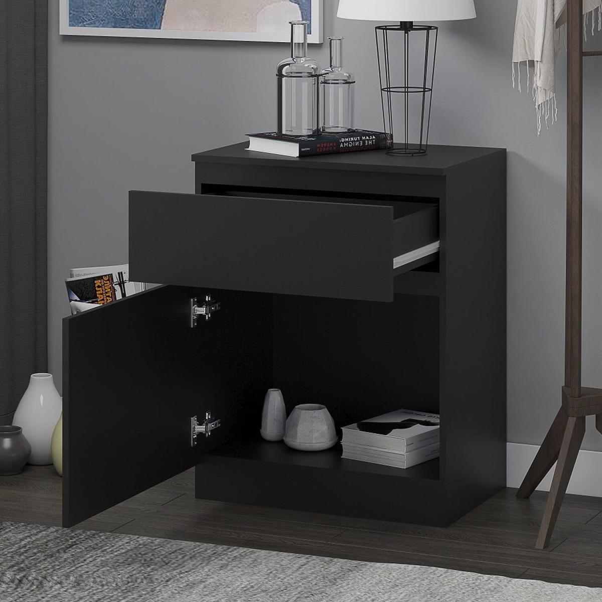 Modern Compact Sideboard or Storage Unit with Cupboard and Drawer. This versatile storage unit has a drawer at the top and an open cupboard below. Perfect for hallways or living rooms as extra storage. Delivered flat-packed for Home Assembly.