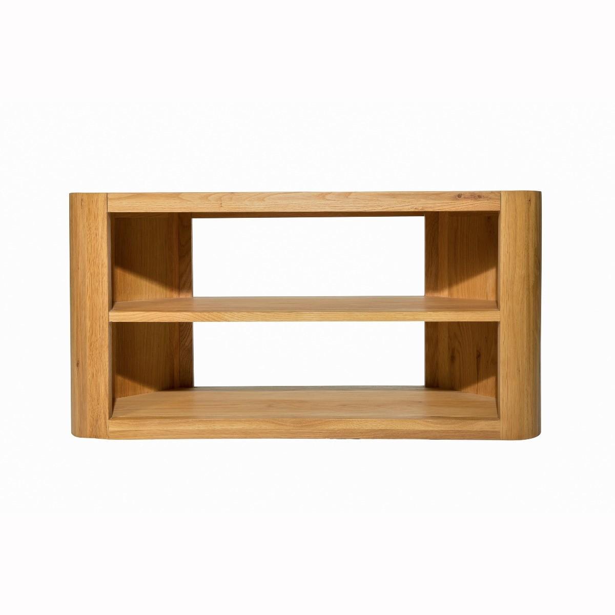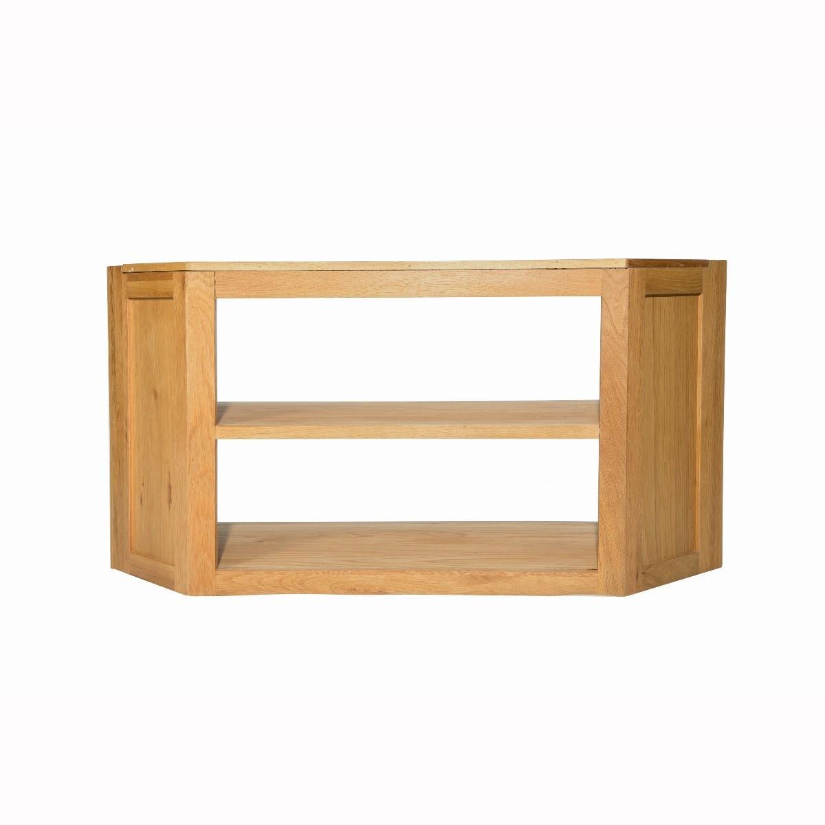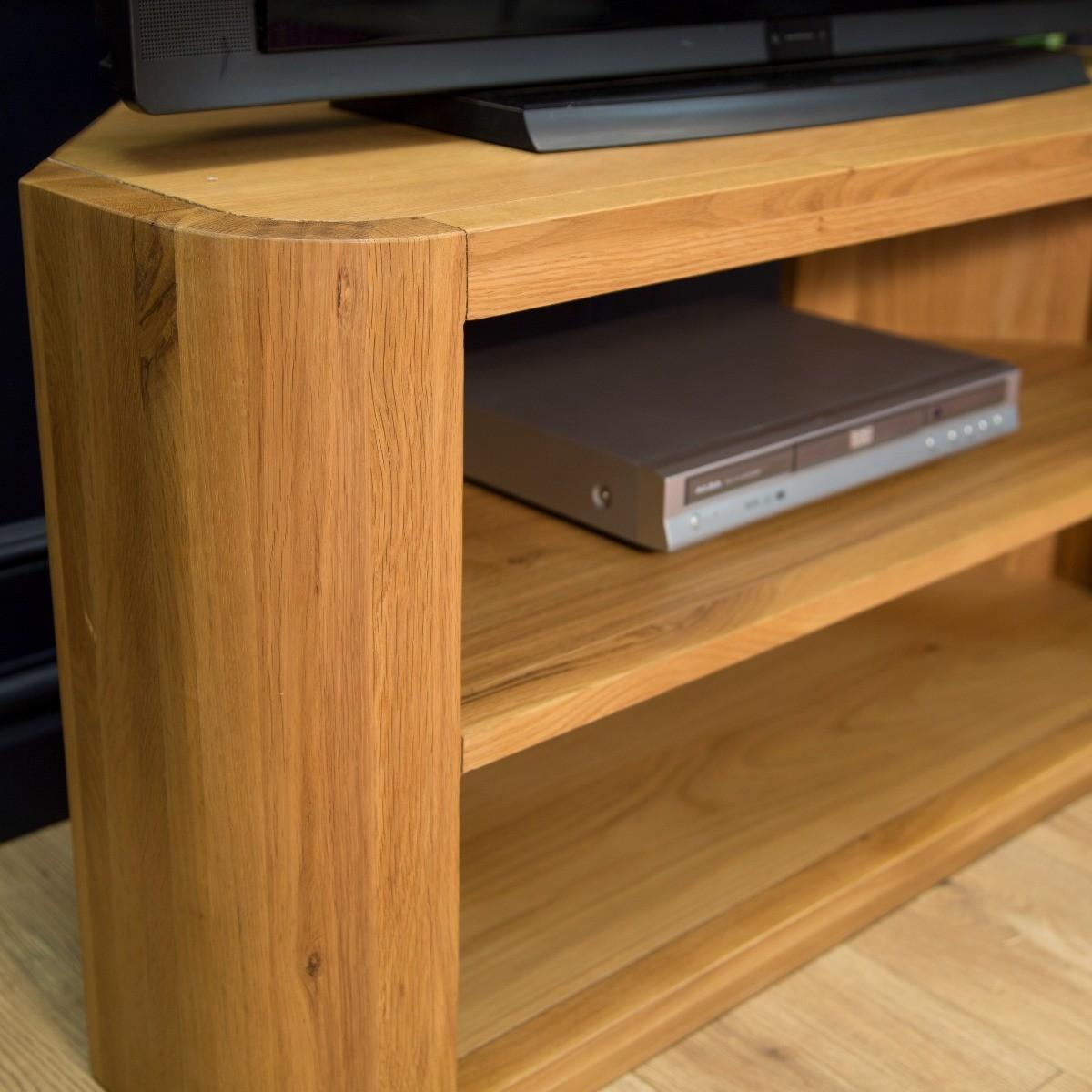 The Modern Oak Living collection is built for a lifetime of memories. Constructed from solid oak with original features, these pieces will become a much-loved part of your family. This solid oak corner TV unit features lightly enhanced grain and looks great as your home entertainment area. Expertly crafted from solid sustainable oak Rounded corners are beautiful and practical for young families An open shelf for your console Finished in smooth, natural oil Pre-assembled and ready for your use