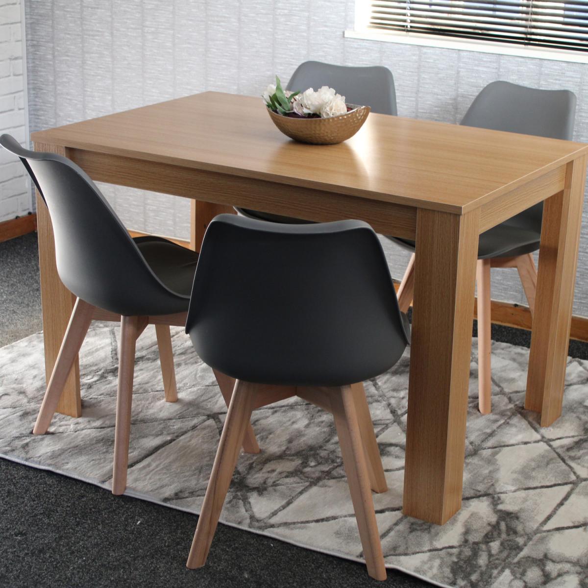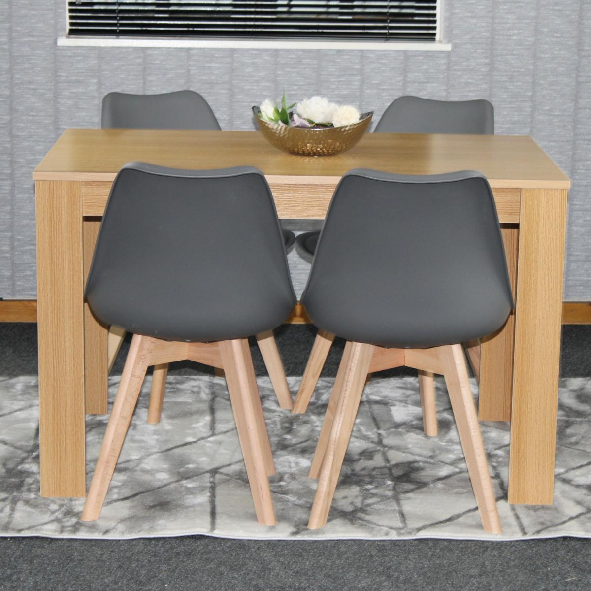 Modern Oak Dining Table And 4 Dark Grey Tulip Chairs - Oak/Dark Grey