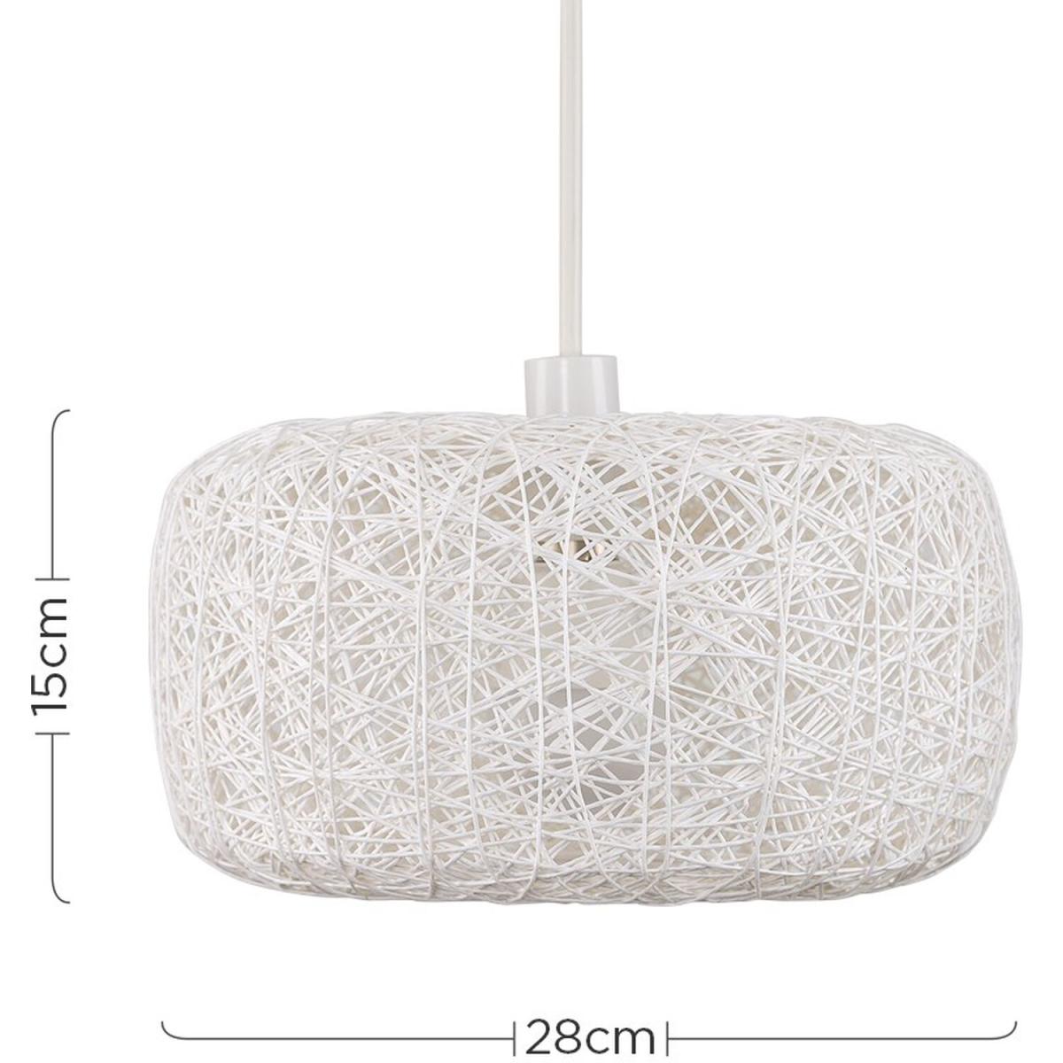 Modern ceiling pendant lampshade in an off white wicker lattice rattan finish. Features a round design that allows the light to filter through beautifully, creating an ambient glow. Perfect for living rooms, bedrooms, hallways and dining areas. Easily fits to your existing lampholder so an Electrian is not required. Ceiling lights are usually the main source of illuminating a room but with the many styles on offer today, also become a main focal point or talking point. The right fitting can make a real style statement and complete your living space look.