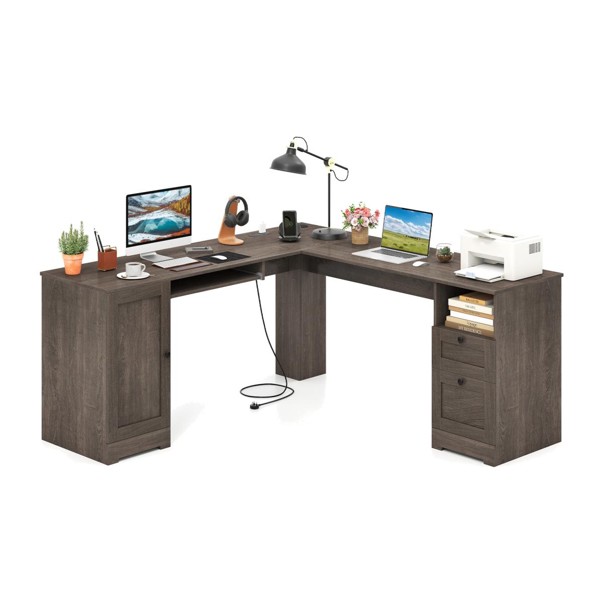 Enjoy the epitome of efficiency with this ultra-spacious L-shaped corner desk that not only saves space but elevates style. Perfect for multitaskers, this large office desk boasts a generous 168 cm tabletop fit for dual monitors - ideal for the bustling office worker or the avid gamer. Stay powered up with an all-in-one charging station featuring 2 AC outlets, a USB, and a Type-C port, all while keeping cables neat with an integrated cable hole.