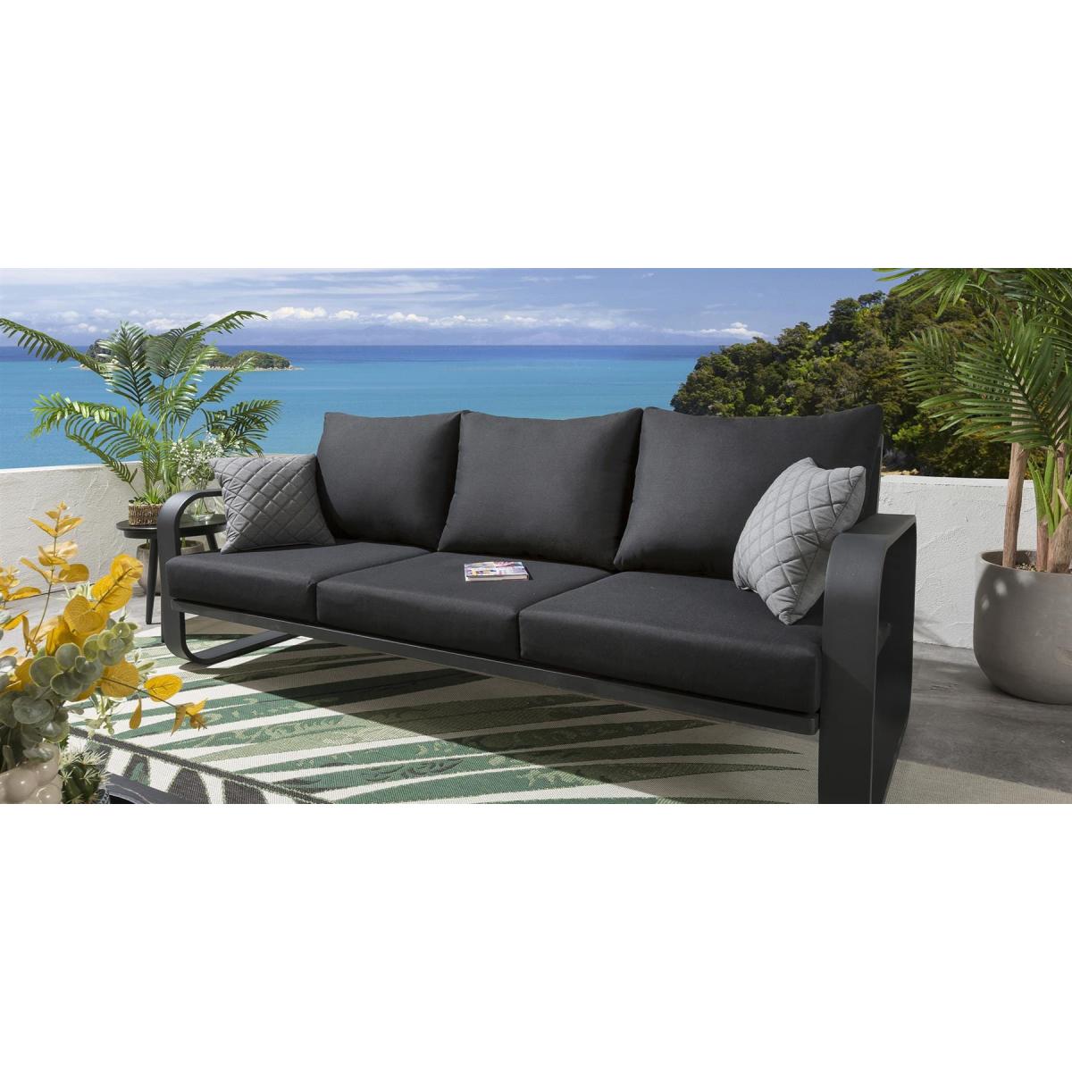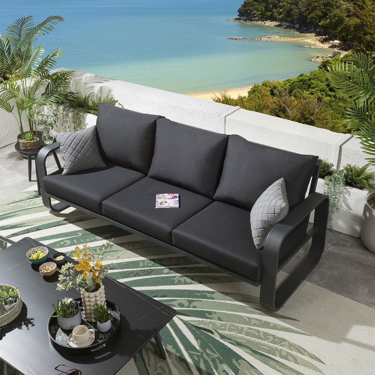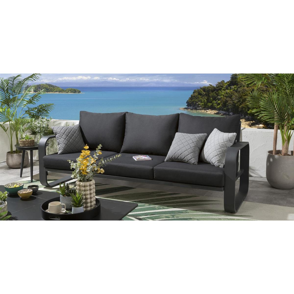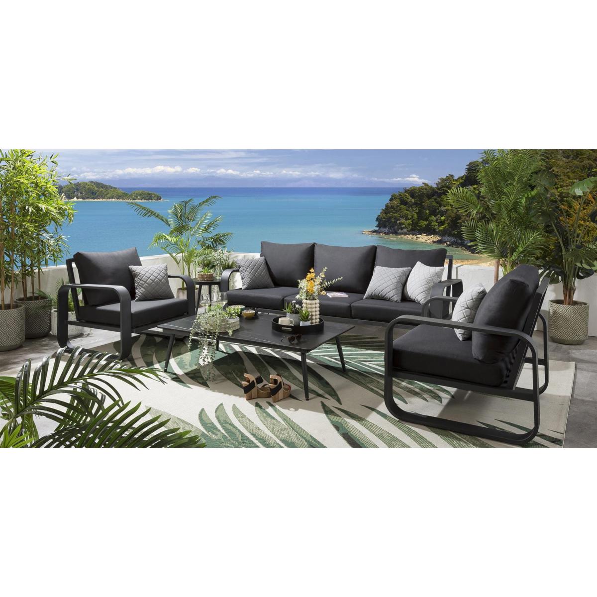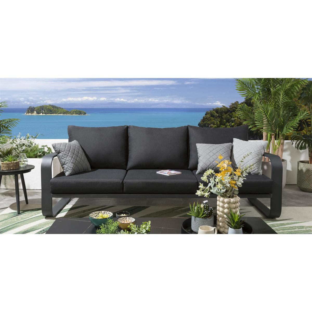 Not only does the Quatropi Freddy ultra modern Garden Sofa Range look great, but it is also designed to withstand the elements, making it ideal for outdoor use. The deep, soft cushions provide maximum comfort, while the oversized aluminum frame ensures durability and stability. The dark grey aluminium frames and cushions offer a dramatic and contemporary look to any outdoor space, If you need more information about this product, use the Live Chat service to speak to the team or send us a message. Spread the cost our with interest-free finance options. Minimum spend applies. W230cm D92cm H84cm 5 Year Warranty Free Winter Cover