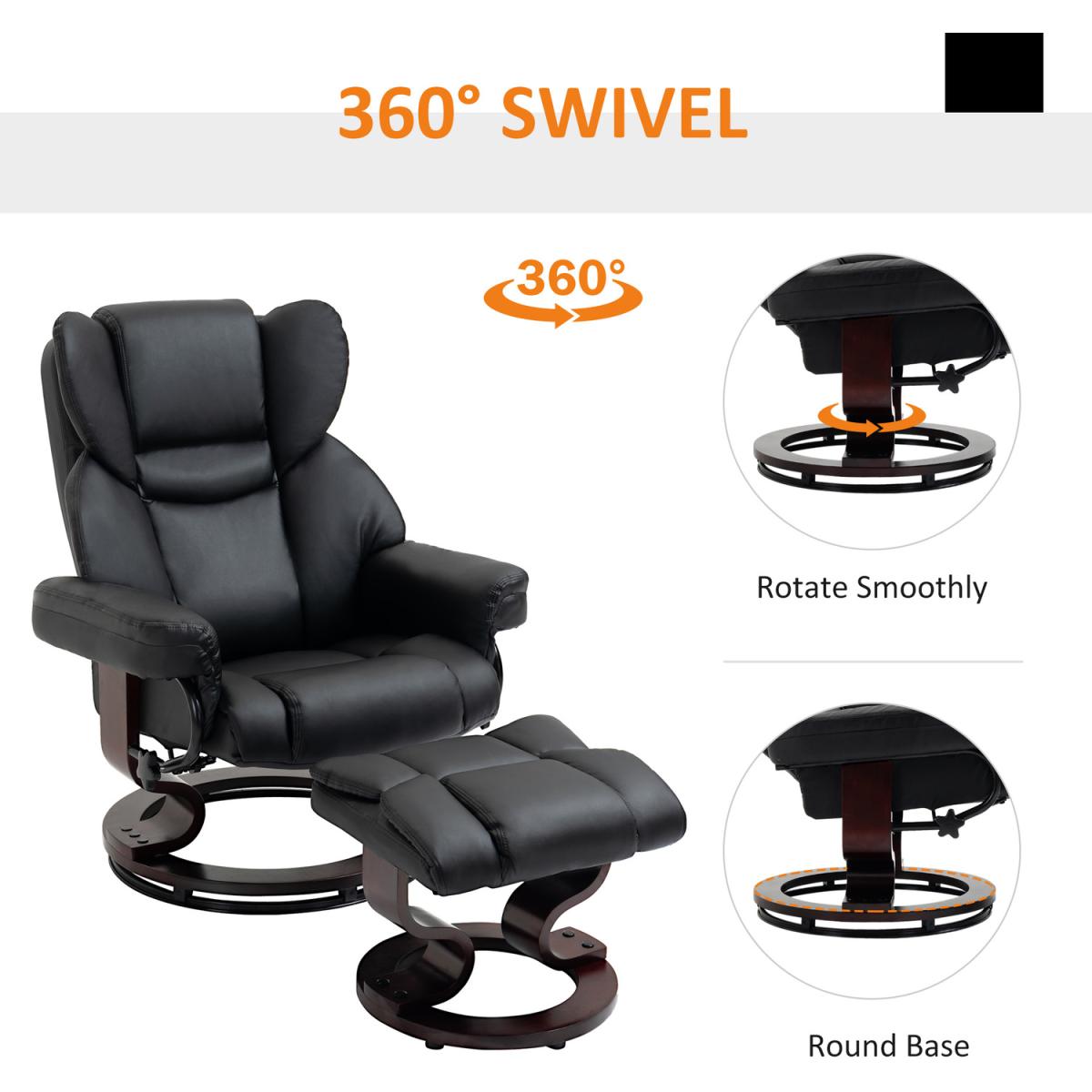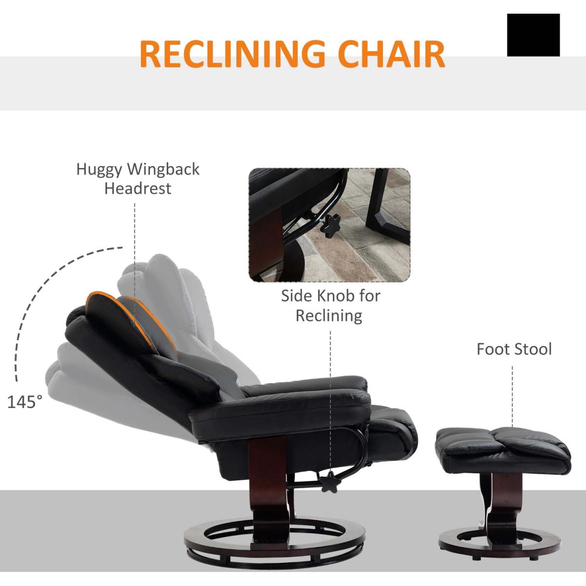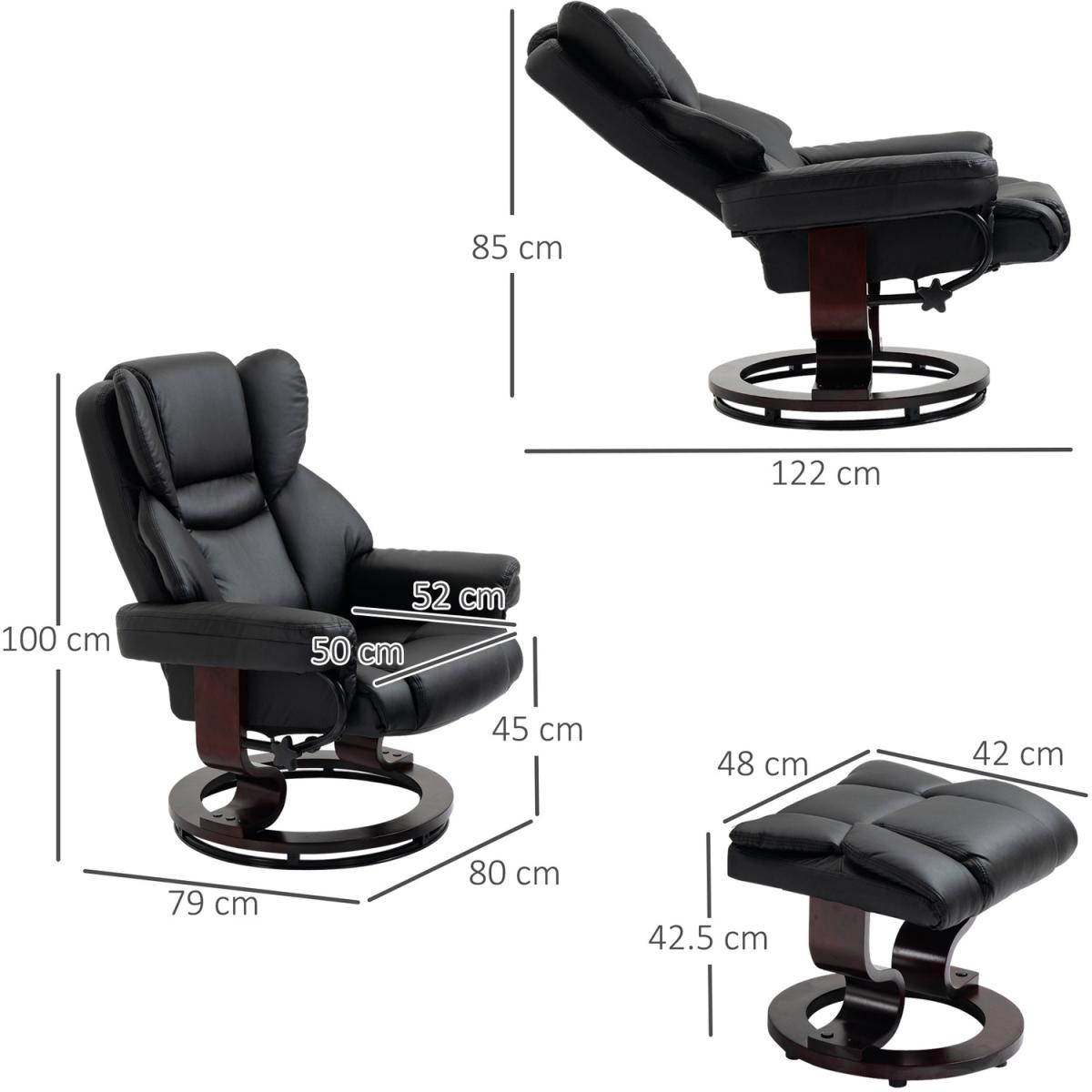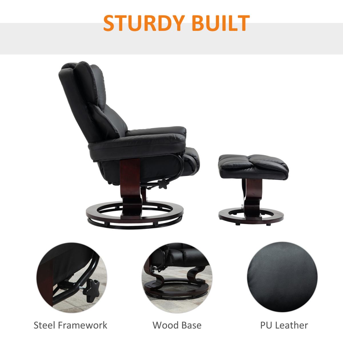 Welcome superior comfort into your humble abode with this large, executive armchair and footstool from HOMCOM. Using metal as the rounded chair frame to ensure strength and structure in your home, it is made into a wide seat design, with thick padding and soft faux leather upholstery for a modern look that's easy to maintain. Manually pushing back to a 135 angle the ideal spot for resting.