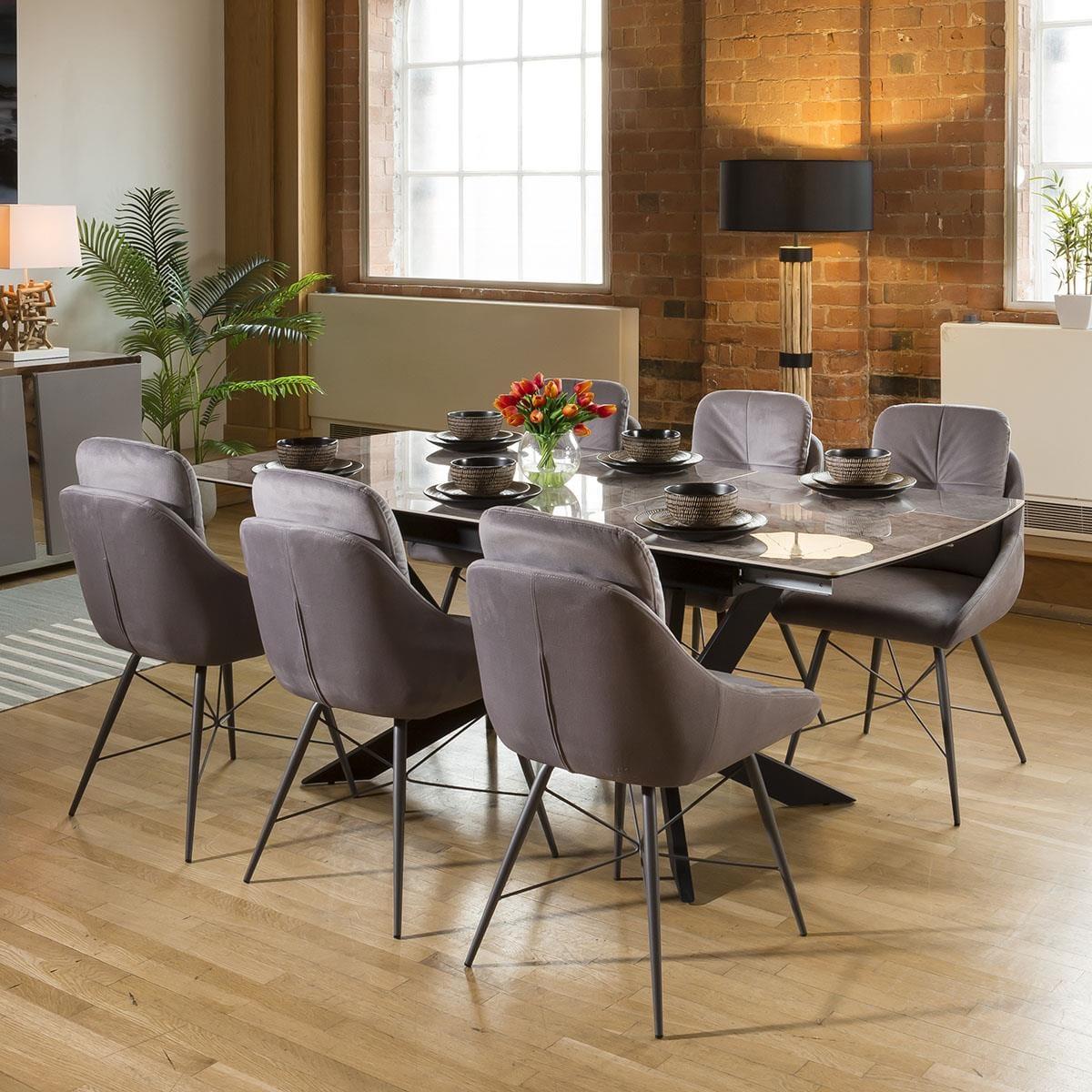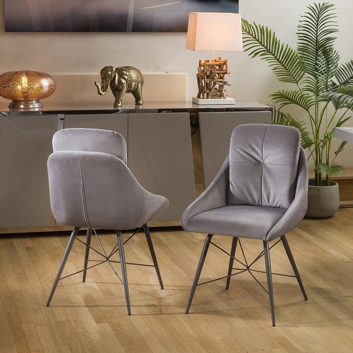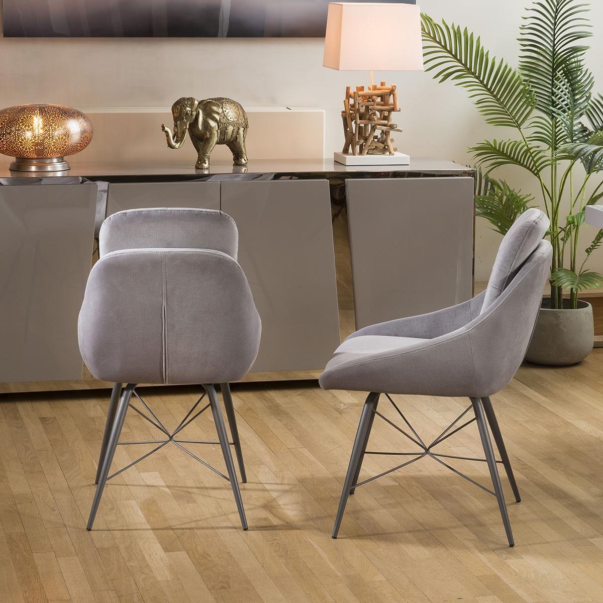 This wonderfully stylish fabric dining chair with arms are a perfect accompaniment to any modern dining table. The medium grey fabric is of the highest quality of which is complimented by the grey powder coated steel spindle legs. Very comfy and suited to prolonged sitting periods. Quatropi Dining Chairs some of the highest quality and most unique chairs available for sale in the UK. Our designer range varies from plush, quilted traditional styles to modern to contemporary carver designer dining chairs. Our range of colours and fabrics is huge; whether you want velvet, faux leather, suede, or bright fabrics - we have it! Quatropi premium dining chairs are tried and tested - we use heavy duty materials and they are built to withstand heavy use in the busiest dining room and kitchens. If you need more information about this product, use the Live Chat service to speak to the team or send us a message. Spread the cost our with interest-free finance options. Minimum spend applies. W47cm D62cm H89cm Seat Height 50cm Premium Quality Furniture
