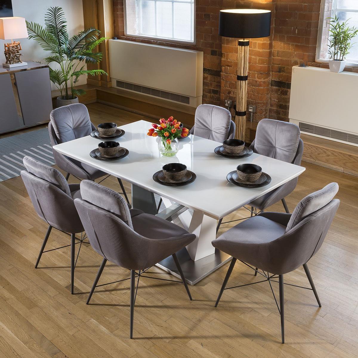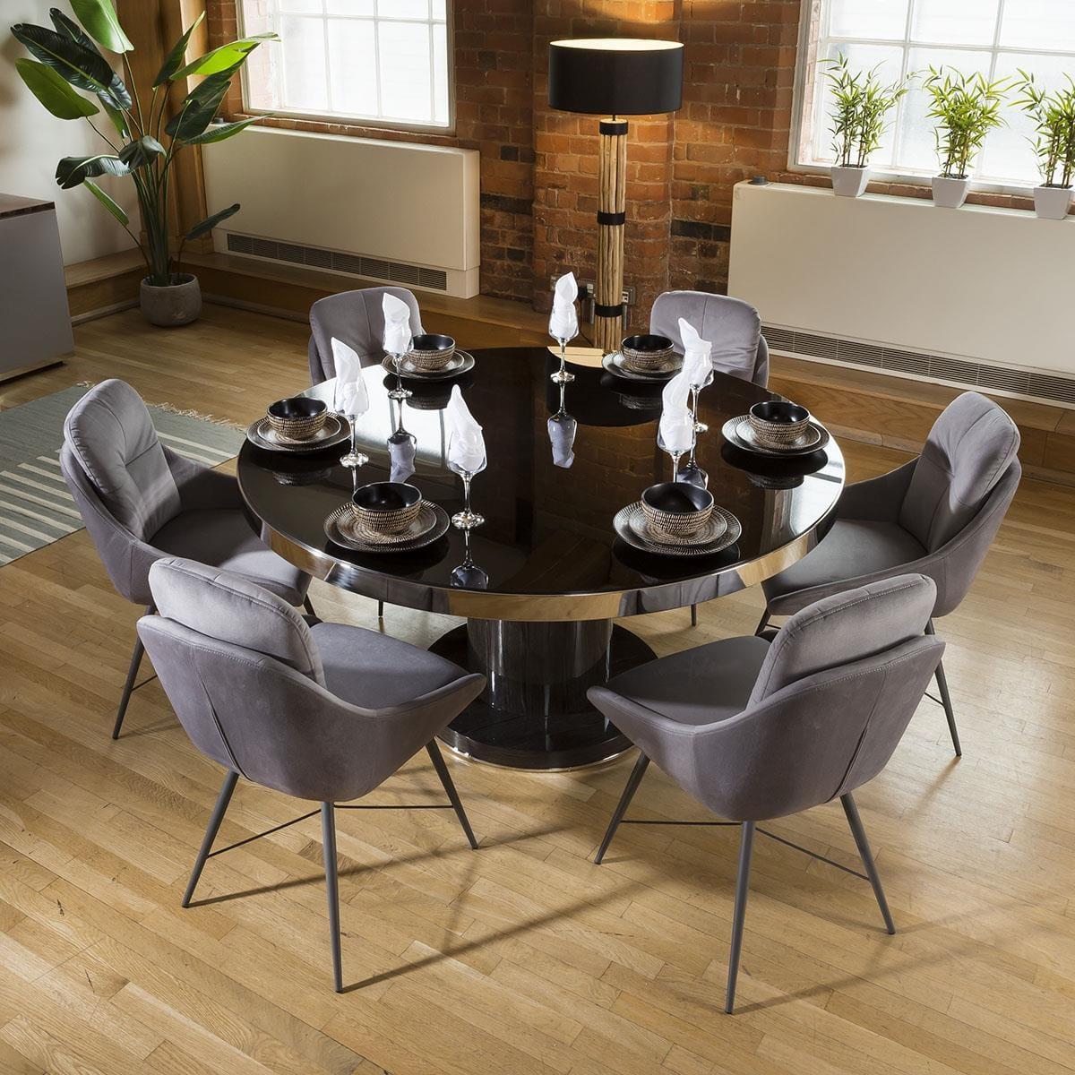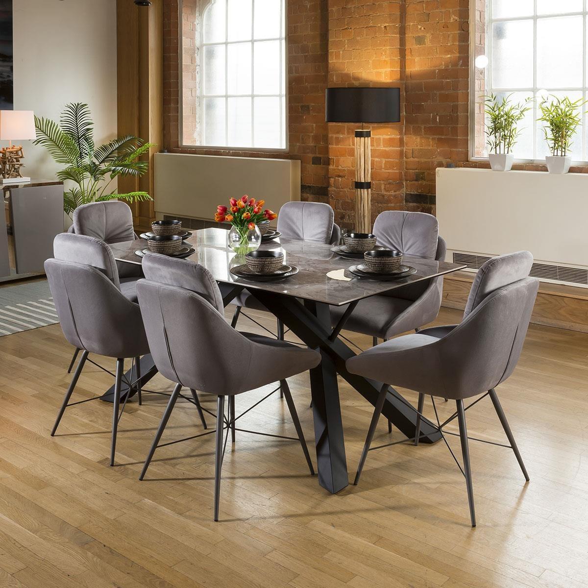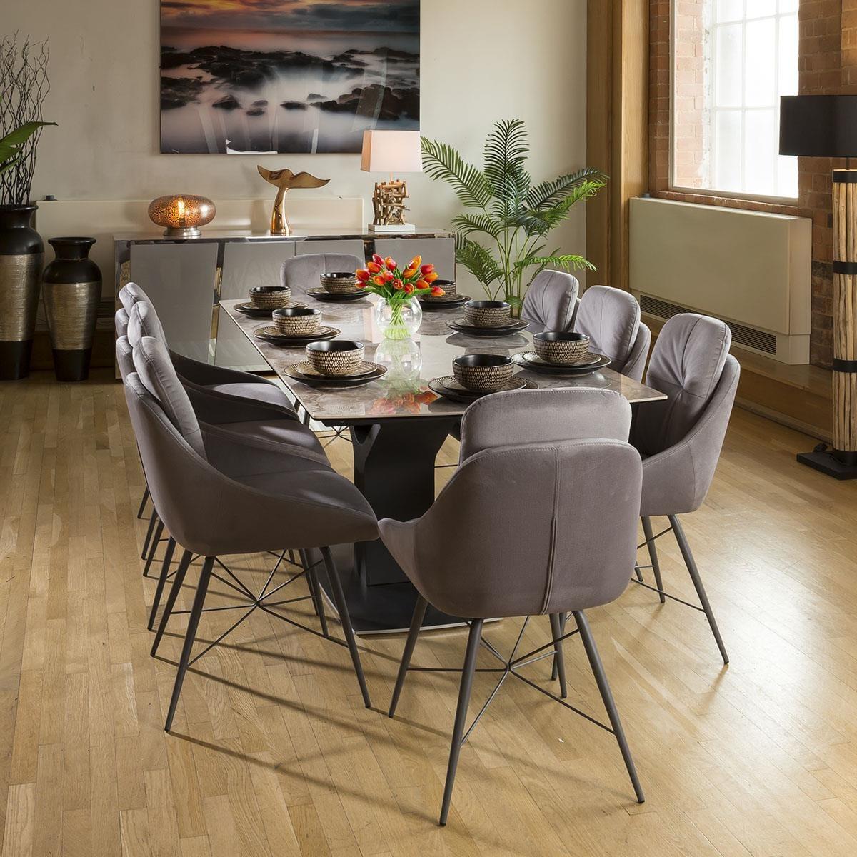 This wonderfully stylish fabric dining chair with arms are a perfect accompaniment to any modern dining table. The medium grey fabric is of the highest quality of which is complimented by the grey powder coated steel spindle legs. Very comfy and suited to prolonged sitting periods. Quatropi Dining Chairs some of the highest quality and most unique chairs available for sale in the UK. Our designer range varies from plush, quilted traditional styles to modern to contemporary carver designer dining chairs. Our range of colours and fabrics is huge; whether you want velvet, faux leather, suede, or bright fabrics - we have it! Quatropi premium dining chairs are tried and tested - we use heavy duty materials and they are built to withstand heavy use in the busiest dining room and kitchens. If you need more information about this product, use the Live Chat service to speak to the team or send us a message. Spread the cost our with interest-free finance options. Minimum spend applies. W47cm D62cm H89cm Seat Height 50cm Premium Quality Furniture