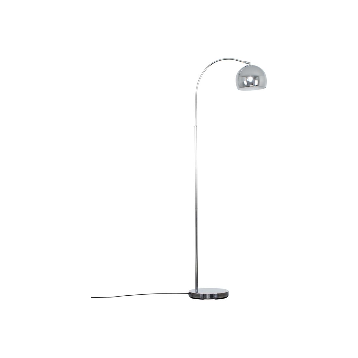 Modern Polished Chrome Curved Stem Floor Lamp With Chrome Shade - Silver