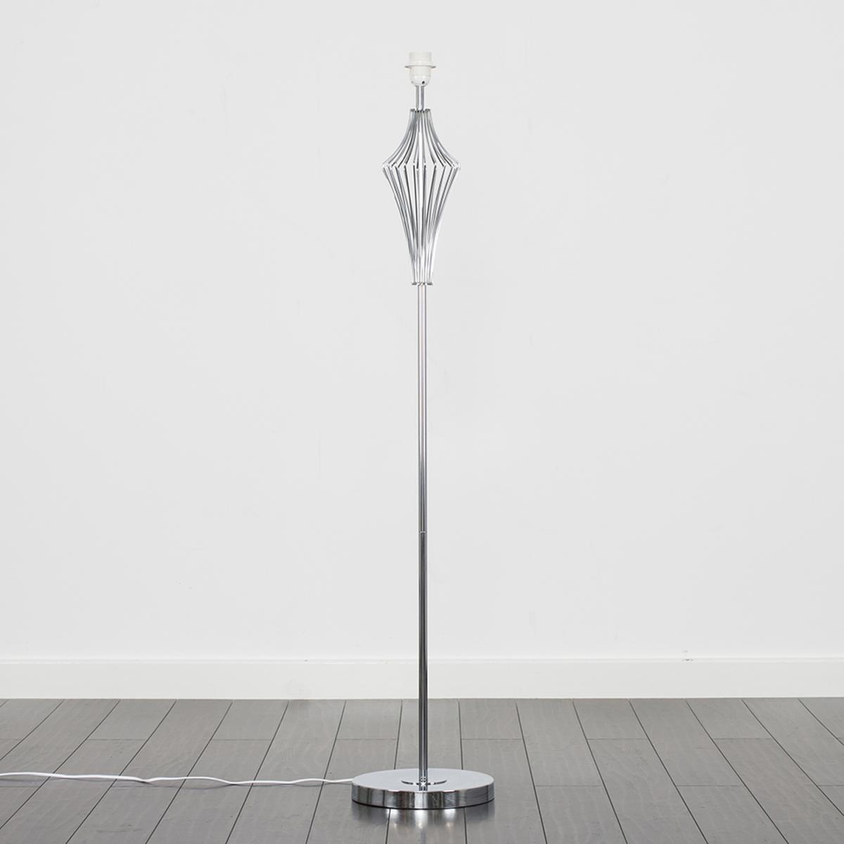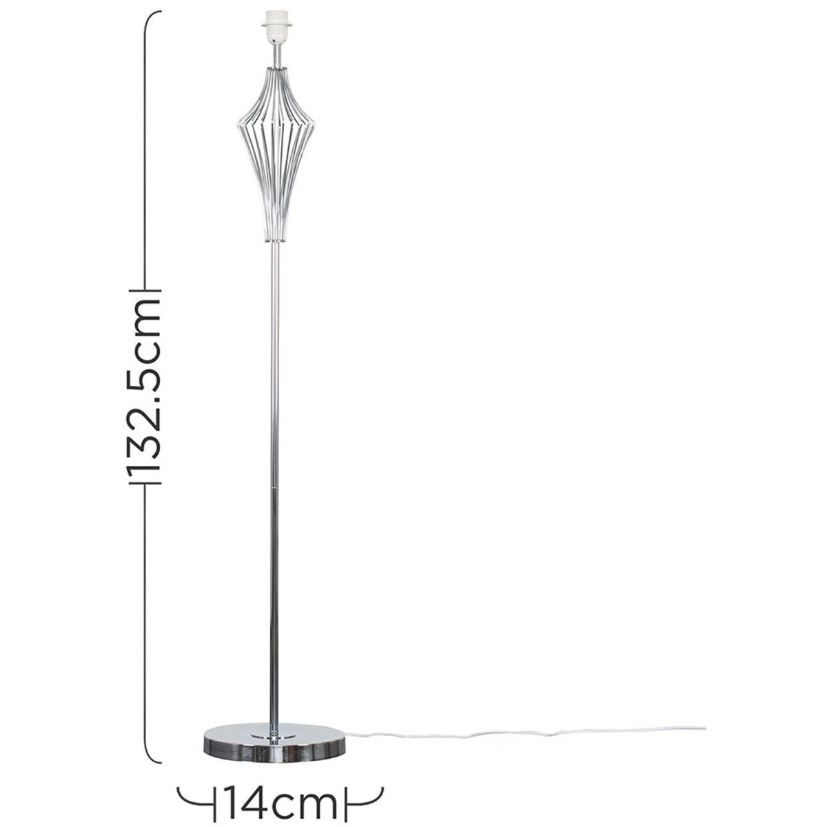 Modern floor lamp base in a polished chrome effect finish. This contemporary floor lamp base features a stunning metal wire geometric diamond design, guaranteed to make a statement in any home. Floor lamps are a great way to bring additional lighting to a room - perfect for hallways, bedrooms, lounges, living rooms and offices. Simply pair with a shade of your choice to suit your own decor.