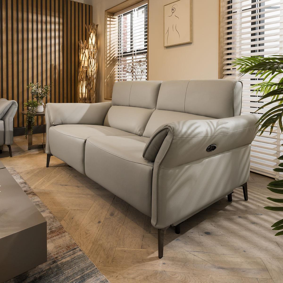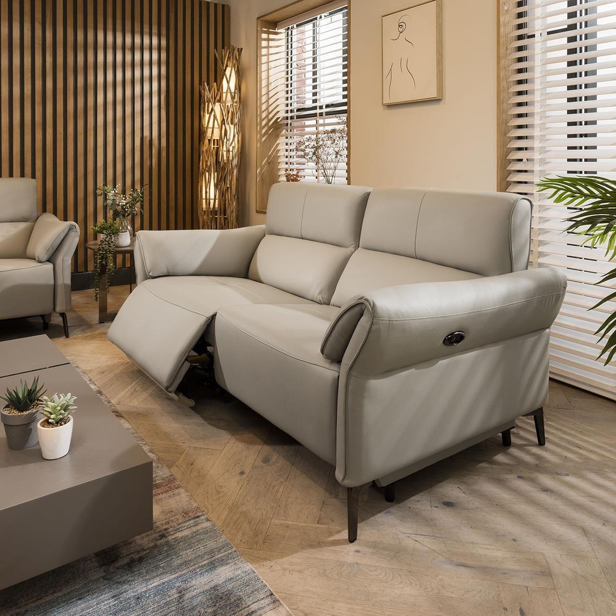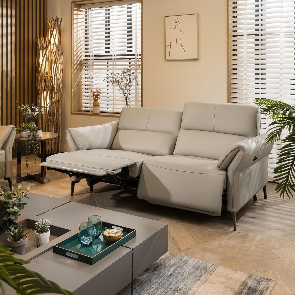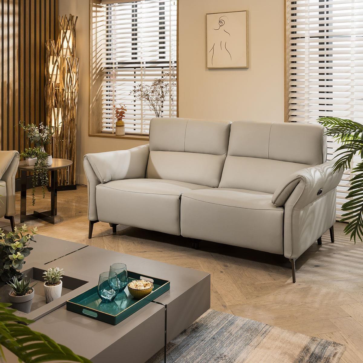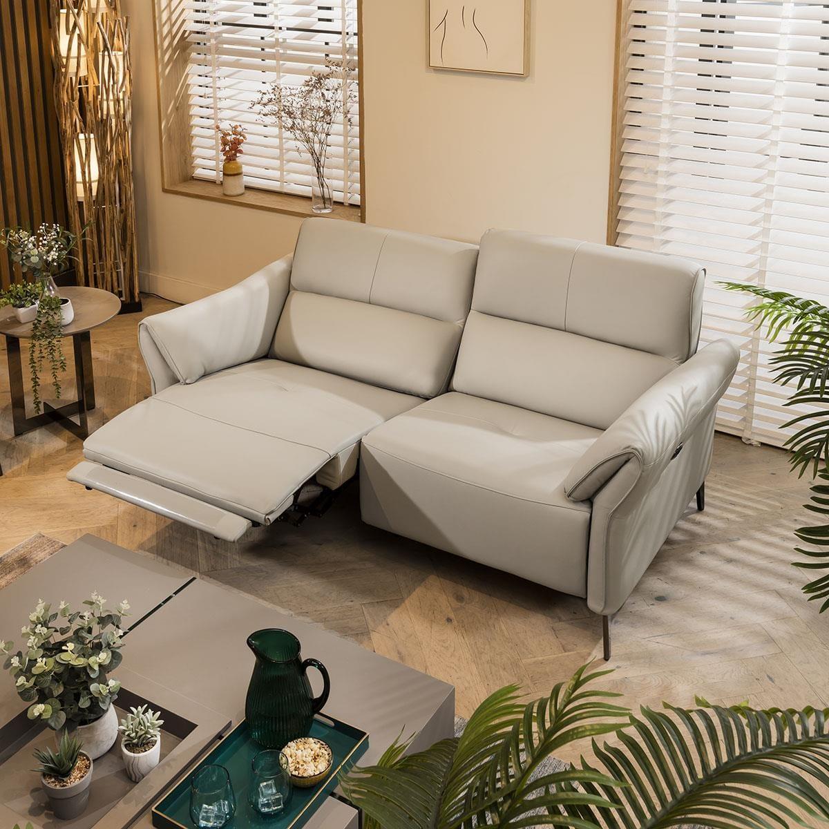It's the ultimate luxury sofa for your modern living room: the premium stone beige leather recliner sofa. With its sleek and sophisticated design, this 2-seater sofa is the perfect addition to any contemporary space. The stunning stone beige leather with the electric-powered recliner provides superior comfort. Crafted with amazing build quality, this sofa is designed to last. The high back design ensures maximum comfort and support, while the recliner controls on the side of the sofa make it easy to adjust to your desired position. The 3.5m power cable provides ample reach, giving you the flexibility to place the sofa anywhere in your room. Made with premium genuine leather on the seat and arms, this recliner sofa exudes luxury and style. The back and outer-arms are made from high-quality faux leather, the material is easy to clean, durable, and gives a high-end finish to your living room. The electric-powered recliner adds a touch of sophistication to your space, allowing you to relax in style. Whether you're watching your favourite TV show, reading a book, or simply lounging, this sofa will make your experience one to remember. Overall, this premium leather stone beige recliner sofa is the perfect combination of comfort and style. With its high back design, electric-powered recliner, and amazing build quality, it is a luxurious addition to any modern living room. W180cm D92cm H101cm This sofa requires some assembly - each seat is modular and they connect together. The legs also need to be attached to the sofa Genuine leather on the seats & arms. UKFR faux leather on outer-arms and back