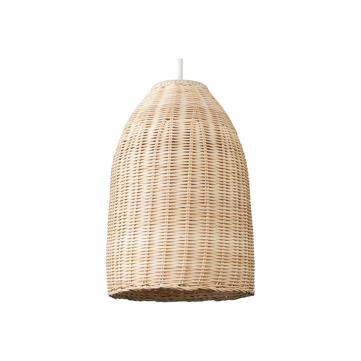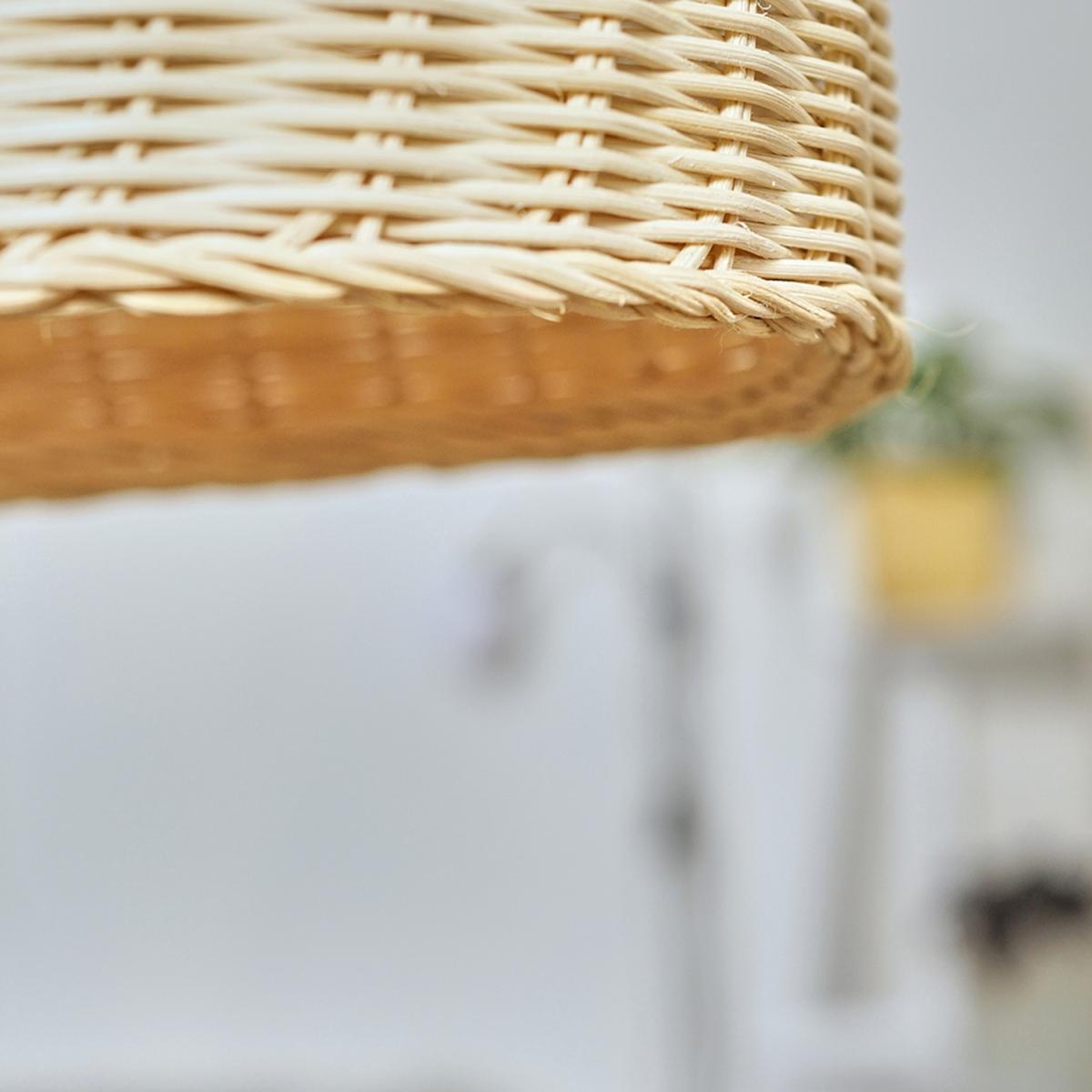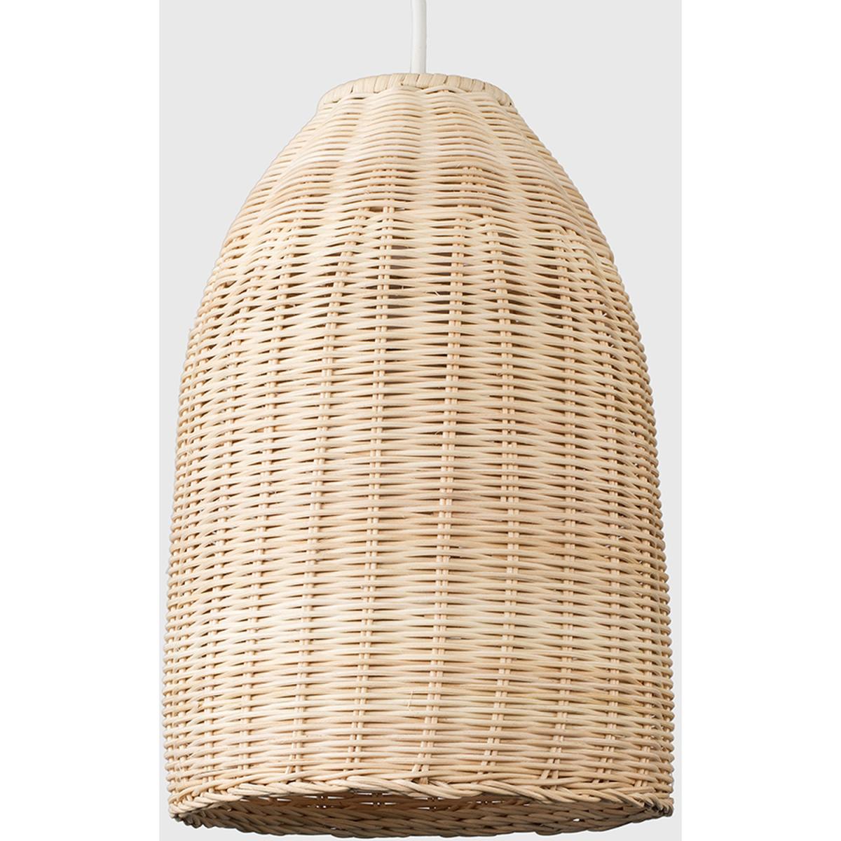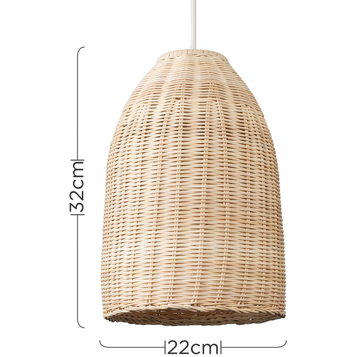 Modern rattan wicker basket style ceiling pendant light shade in a natural finish. This contemporary shade is a quick and easy way to update any room in your home. It simply fixes to your existing ceiling light socket - no wiring required. Ideal for lounges, dining rooms, bedrooms and other living areas. 1 x 60w BC B22 bulb is required - not supplied.