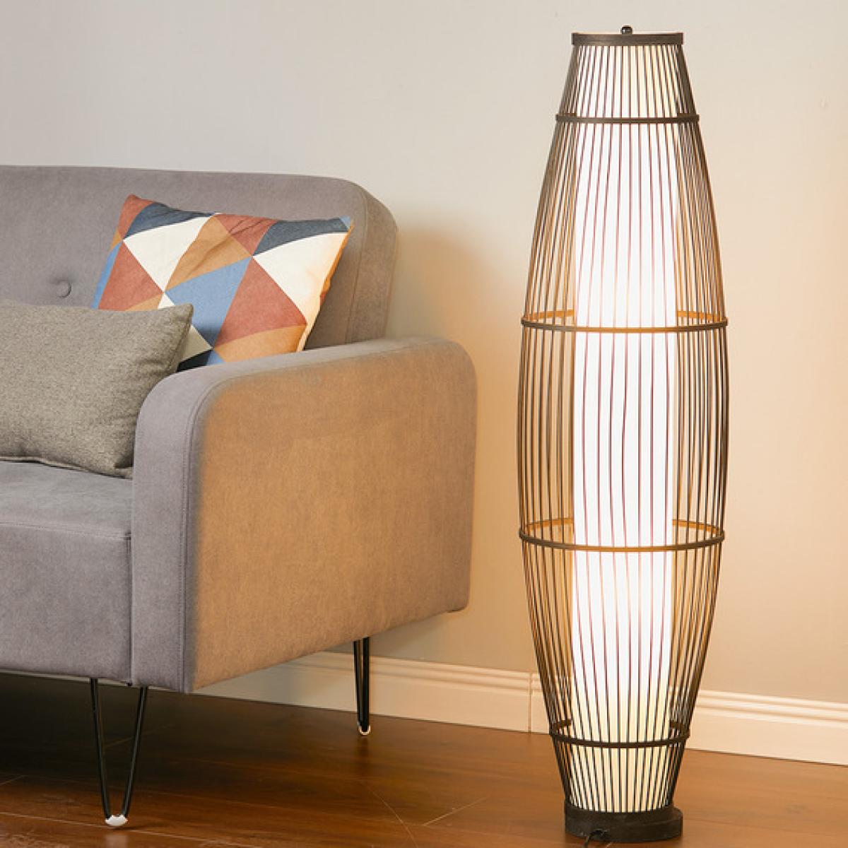 Modern Rattan Wicker Floor Lamp Bedside Night Light Lampshade Living Room - Black
