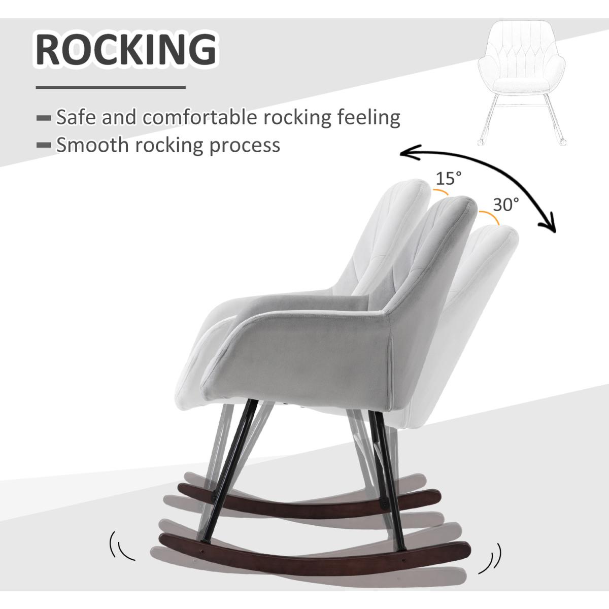 A classic piece, reworked for modern times. This rocking chair from HOMCOM is a must for every home which likes to stand out. The large seat is relaxed in shape and filled with thick sponge for comfort, with high arms and back to support your body and help prevent fatigue when in use. Steel ensures a sturdy base, which is crafted into a smooth curved shape for gentle rocking. Soft plush upholstery finishes this piece for a sophisticated look and feel.