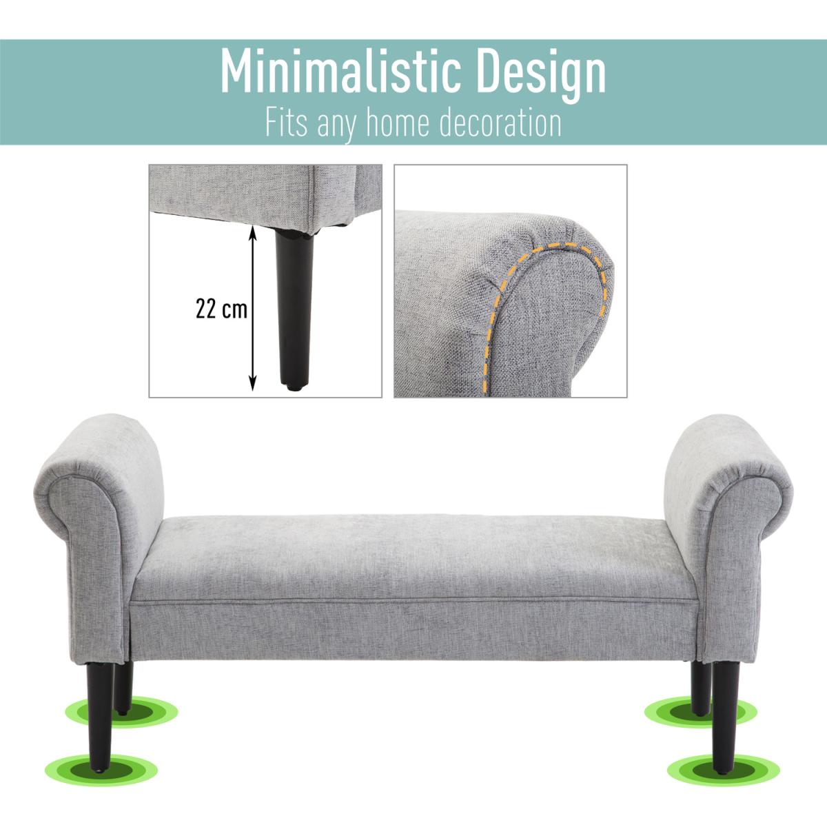 Modern Rolled Arm Bed End Bench - Light Grey / 13.5kg