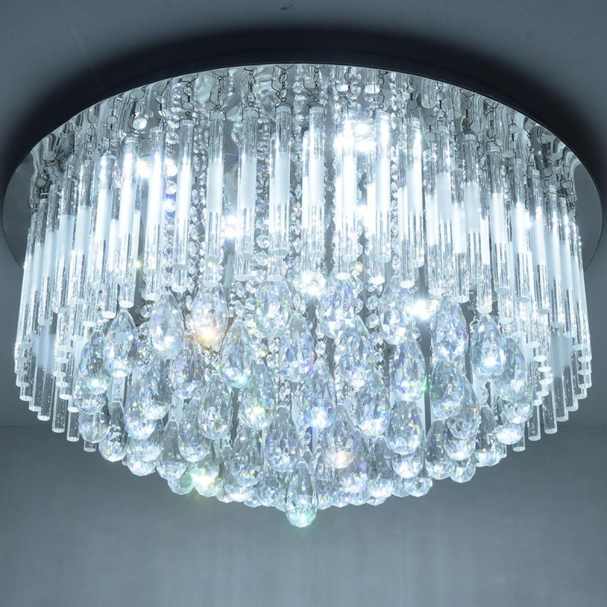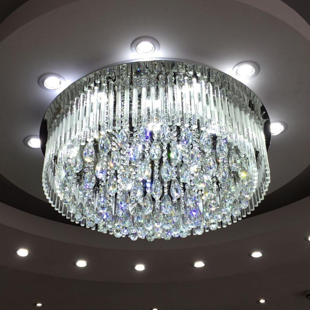 65cm Diameter. Style: crystal, modern/contemporary. Number of LEDs: 9. Finish: electroplated. Materials: K9 Crystal and metal Lamp type: LED/SMDPower:27W. Voltage: 220-240V. Net weight: 17 kgs. Width: 65cm. Length: 65 cm. Body Height: 35 cm Dimmable with Remote Control Bluetooth Speakers80cm Diameter. Style: crystal, modern/contemporary. Number of LEDs: 14 Finish: electroplated. Materials: K9 Crystal and metal Lamp type: LED/SMDPower:42W. Voltage: 220-240V. Net weight: 25 kgs. Width: 80cm. Diameter: 80 cm. Body Height: 35 cm Dimmable with Remote Control Bluetooth Speakers