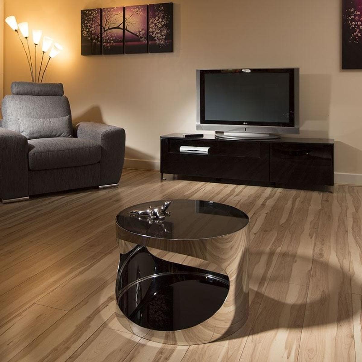 Modern Round Side/Lamp Table/Tables Black Glass Stainless Steel 124