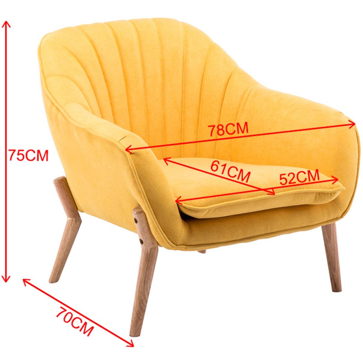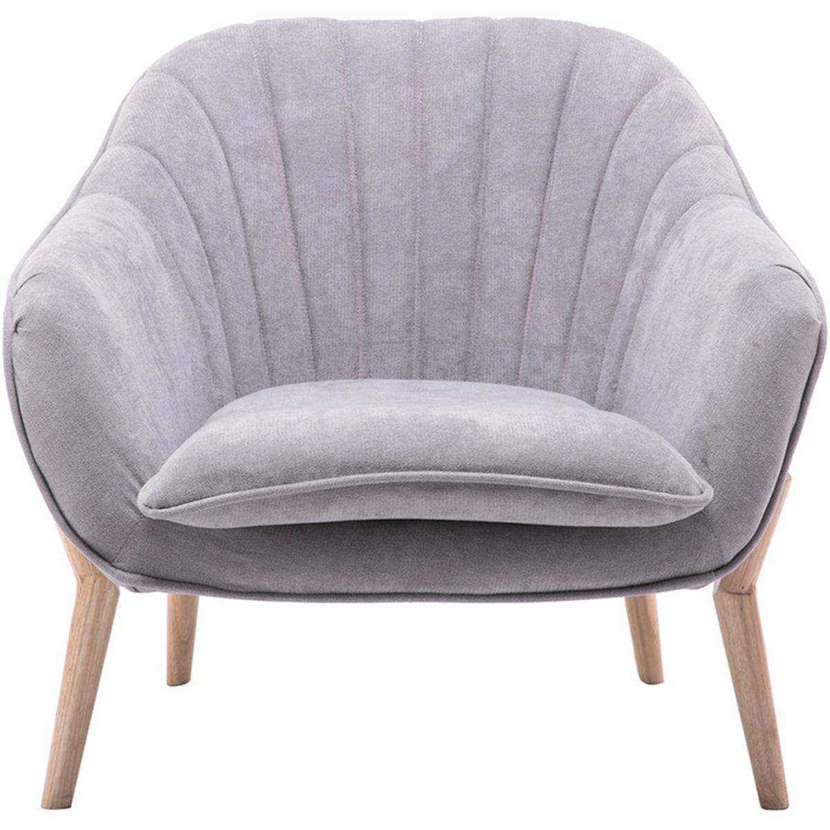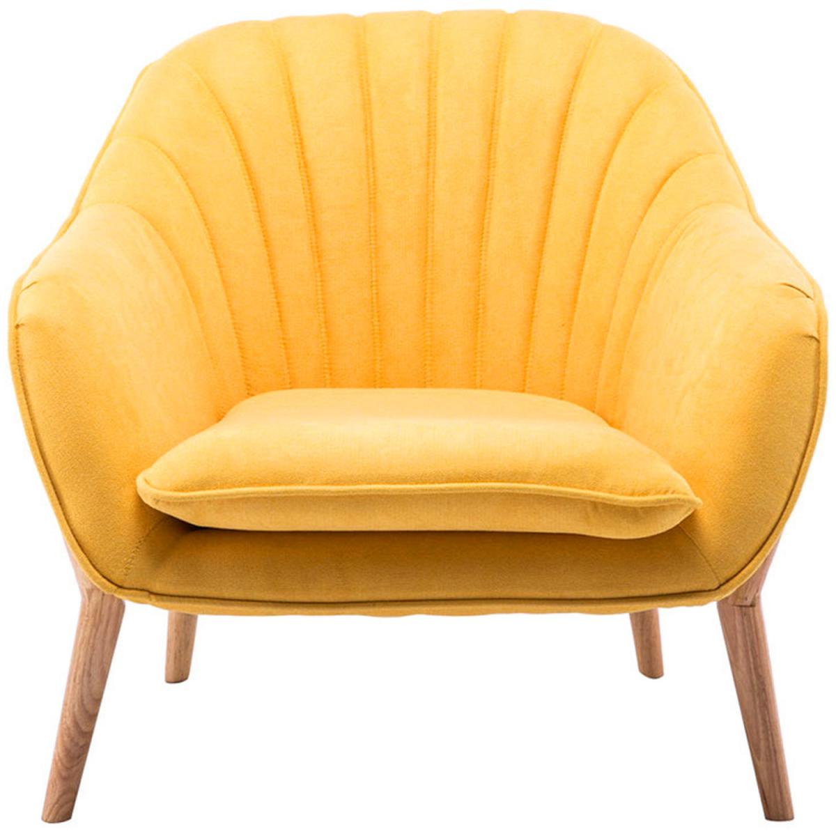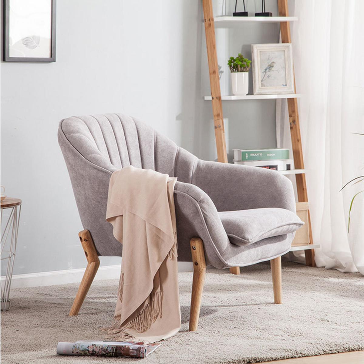 This single armchair is perfectly integrated into the modern style through the curved back and line design. Its graceful curves and simple wooden feet make it the perfect piece of furniture for every room. It's upholstered in sanded fabric and filled with highly dense foam. Assembly is required.