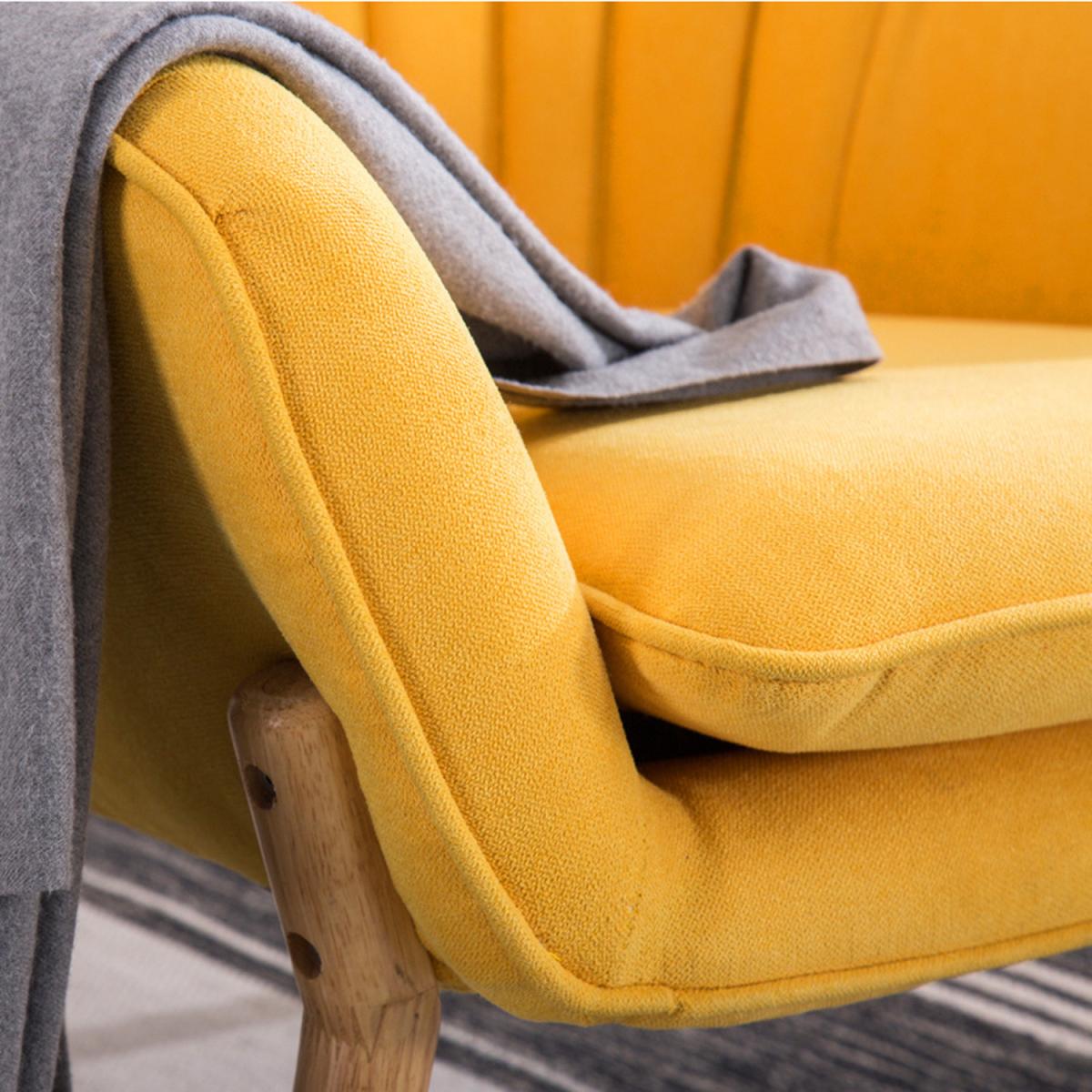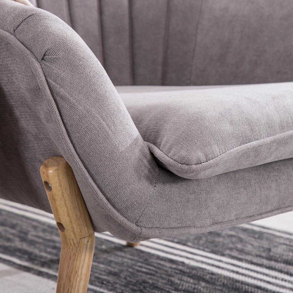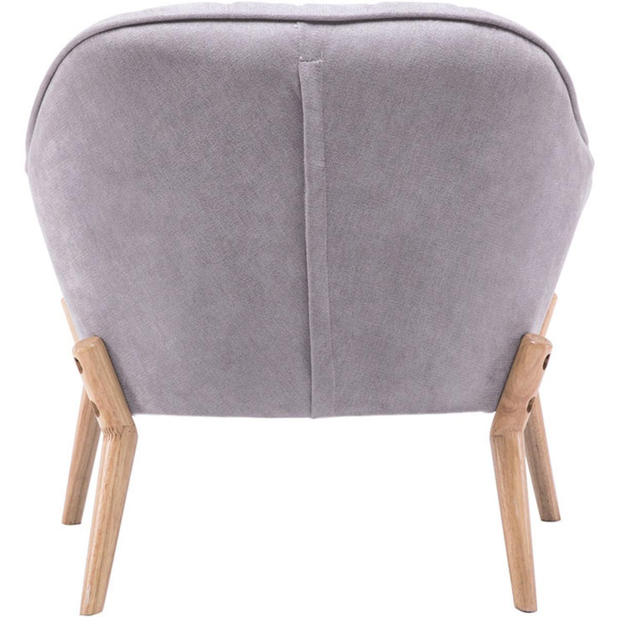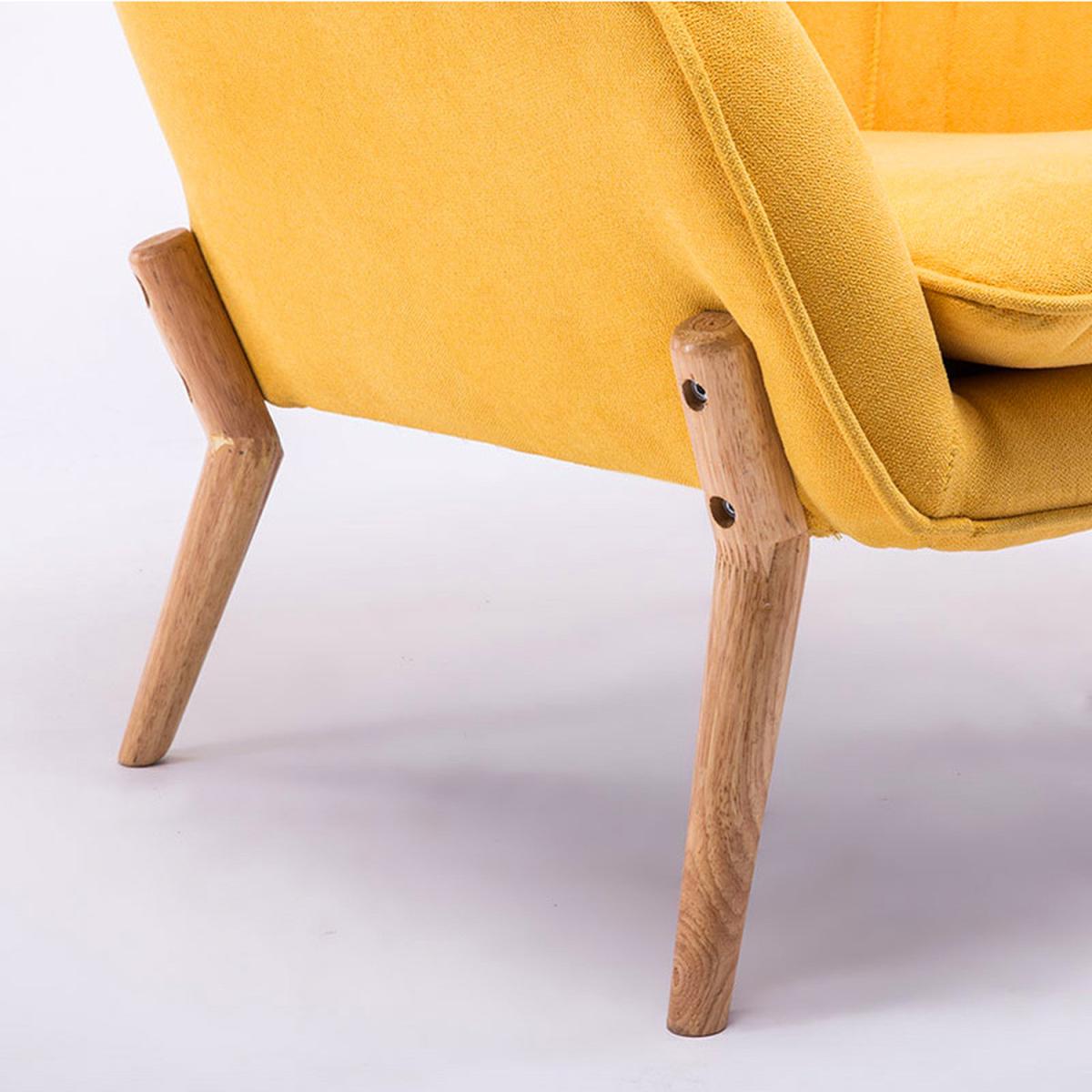 This single armchair is perfectly integrated into the modern style through the curved back and line design. Its graceful curves and simple wooden feet make it the perfect piece of furniture for every room. It's upholstered in sanded fabric and filled with highly dense foam. Assembly is required.