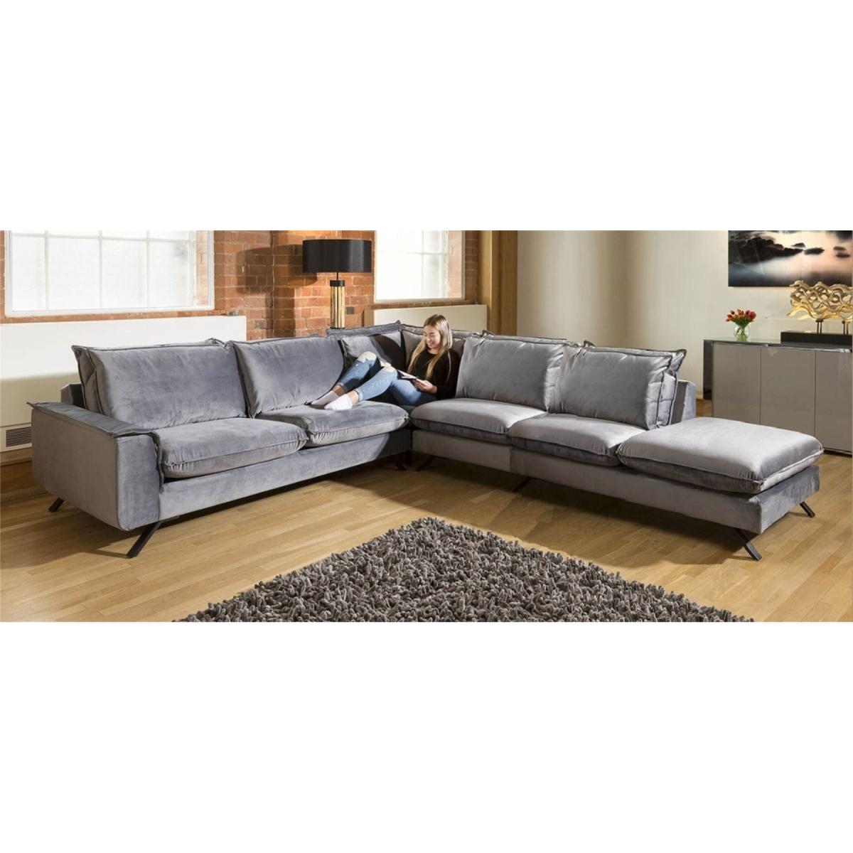 Designed to captivate, the Ellie modular 6-seater corner sofa redefines your living space with its sleek and avant-garde design. With over 100 premium fabric options to choose from, you to tailor this sofa to your exact preferences. Measuring a spacious 351cm x 300cm, it effortlessly accommodates family and friends. Crafted with innovation in mind, the Ellie modular sofa boasts an innovative double back cushion design, providing unparalleled support while exuding a distinctive aesthetic appeal. The unique construction ensures both comfort and style are seamlessly blended, offering a truly immersive lounging experience. Elevating the design further, our sofa stands gracefully off the ground on sleek angled black metal legs, creating an airy and spacious feel in any room. Unleash your creativity with over 100 premium fabric options to choose from, enabling you to tailor this masterpiece to your exact preferences. Each fabric has been meticulously selected to complement the ultra-modern design, making your sofa a true reflection of your personal style. Sink into deep cushioning that envelops you in a cloud of relaxation, making every moment spent on this sofa a rejuvenating escape from the ordinary. Our Modular 6-Seater L Shape Corner Sofa harmonises sophistication with comfort, presenting an iconic centerpiece that transforms your living space into a contemporary haven. Experience the pinnacle of modern furniture design and bring home the future of relaxation W351cm D300cm H90cm We can design the sofa to meet your exact size requirements - call the team for a virtual sofa design All dimensions are approximate due to fabric differences. Please allow tolerance of +/- 5cm to any direction