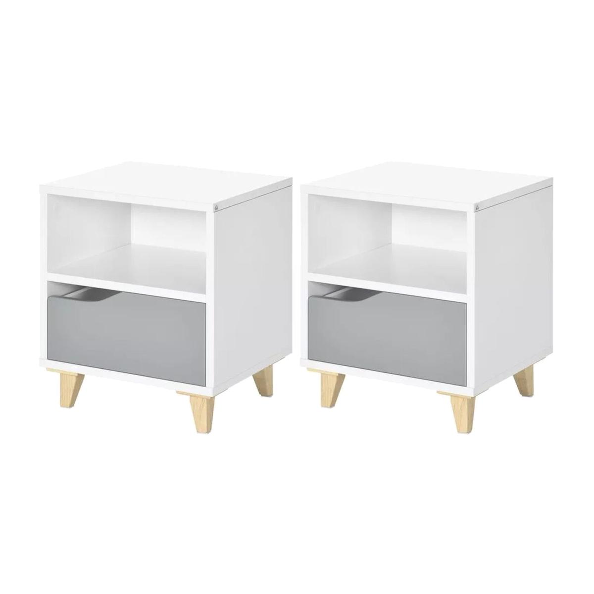 Modern Set of 2 Bedside Tables With Storage - White and Grey