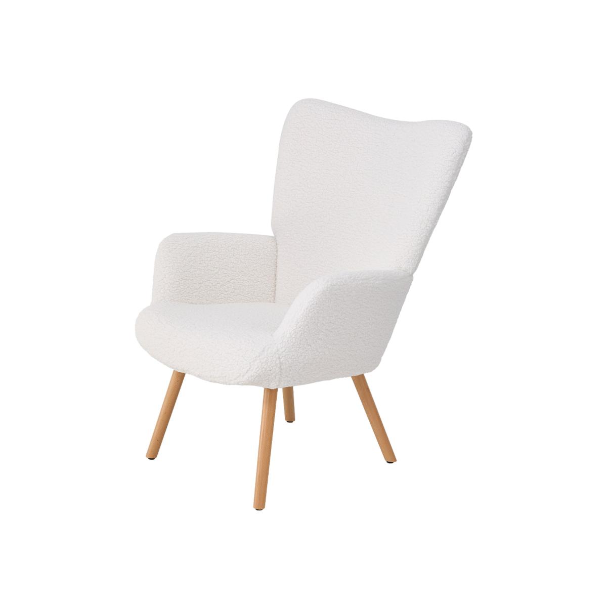 This leisure chair defines modern living with a simple and elegant style that blends comfort with design. The soft sherpa fleece fabric offers a warm and gentle touch that keeps you cosy even in cold weather and once you sit down you will not want to rise. A thick high density backrest and seat cushion provide strong support for long periods of relaxation and the armrests follow the natural lines of your arms for steady comfort. Natural wood legs bring a subtle organic look and the pure white finish softens the room while adding a warm yet refined atmosphere to your home.
