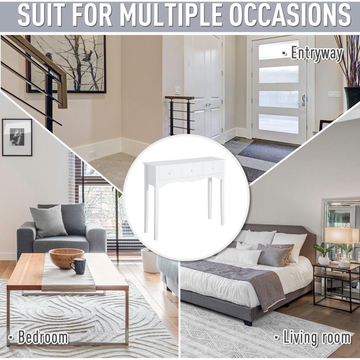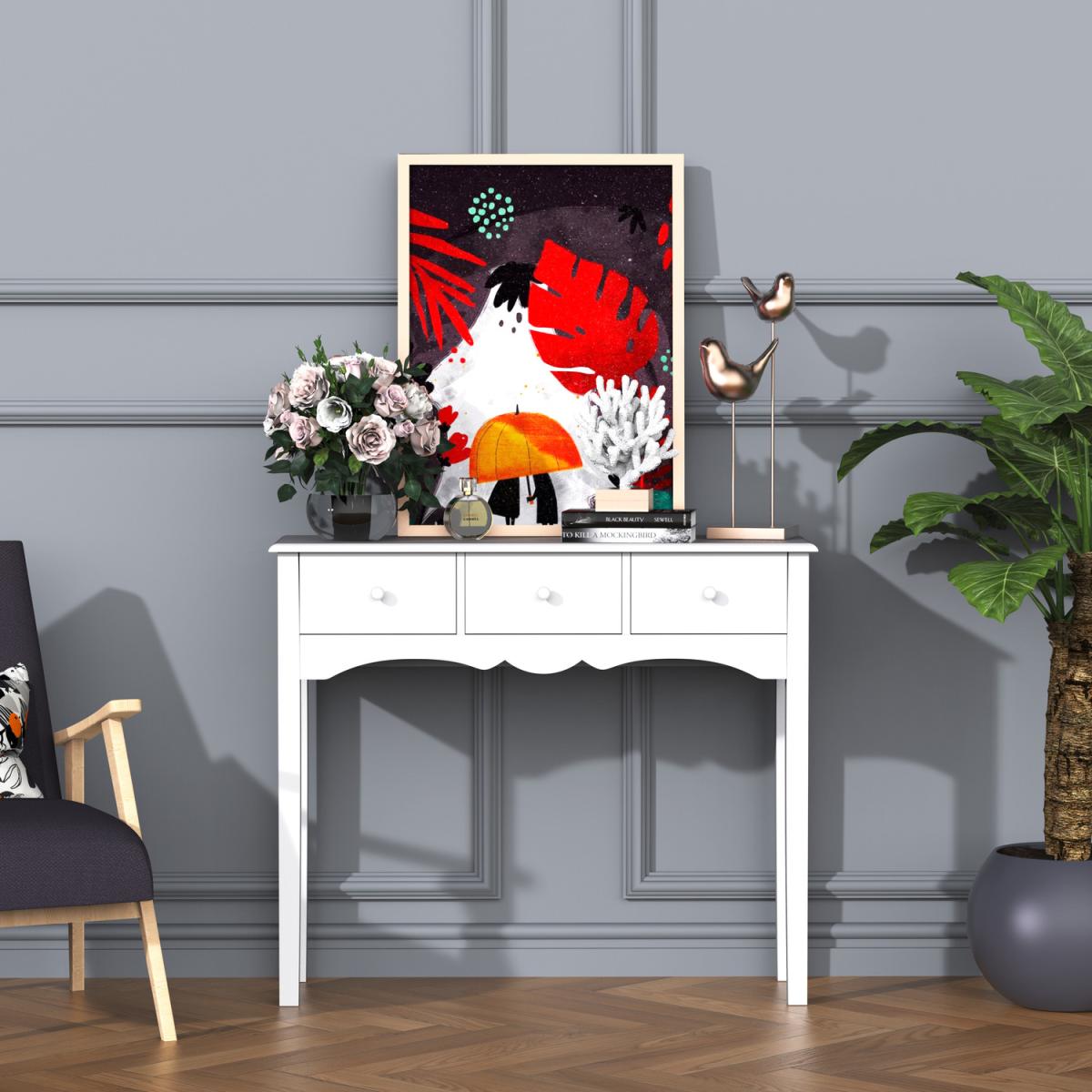 Whether you live in a single room apartment or a luxury villa, whether you are the host or the guest, our console table makes an immediate impression when you enter the room. Robust structure and solid wood leg make this frame is sturdy and reliable for years to use. Crafted into an elegant design to blend in its surroundings with ease. Features 3 pull-out drawers for plenty of storage, with a large tabletop for photos album and ornaments. Do not hesitate and take it home!