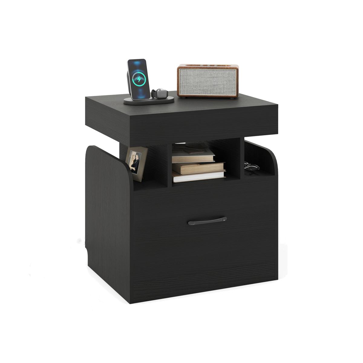 This accessible nightstand will surely make your life more convenient! The built-in charging station allows you to charge multiple devices simultaneously. Notably, wide tabletop with flexible guide rails uncovers hidden storage for discreet item storage. The open compartments allow easy access to bedtime essentials, and the bottom drawer offers concealed storage for personal items. Aside from its practical features, this bedside table also adds a modern and sleek touch to your home.