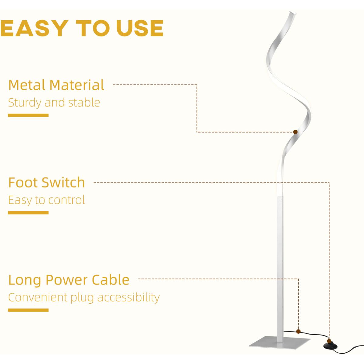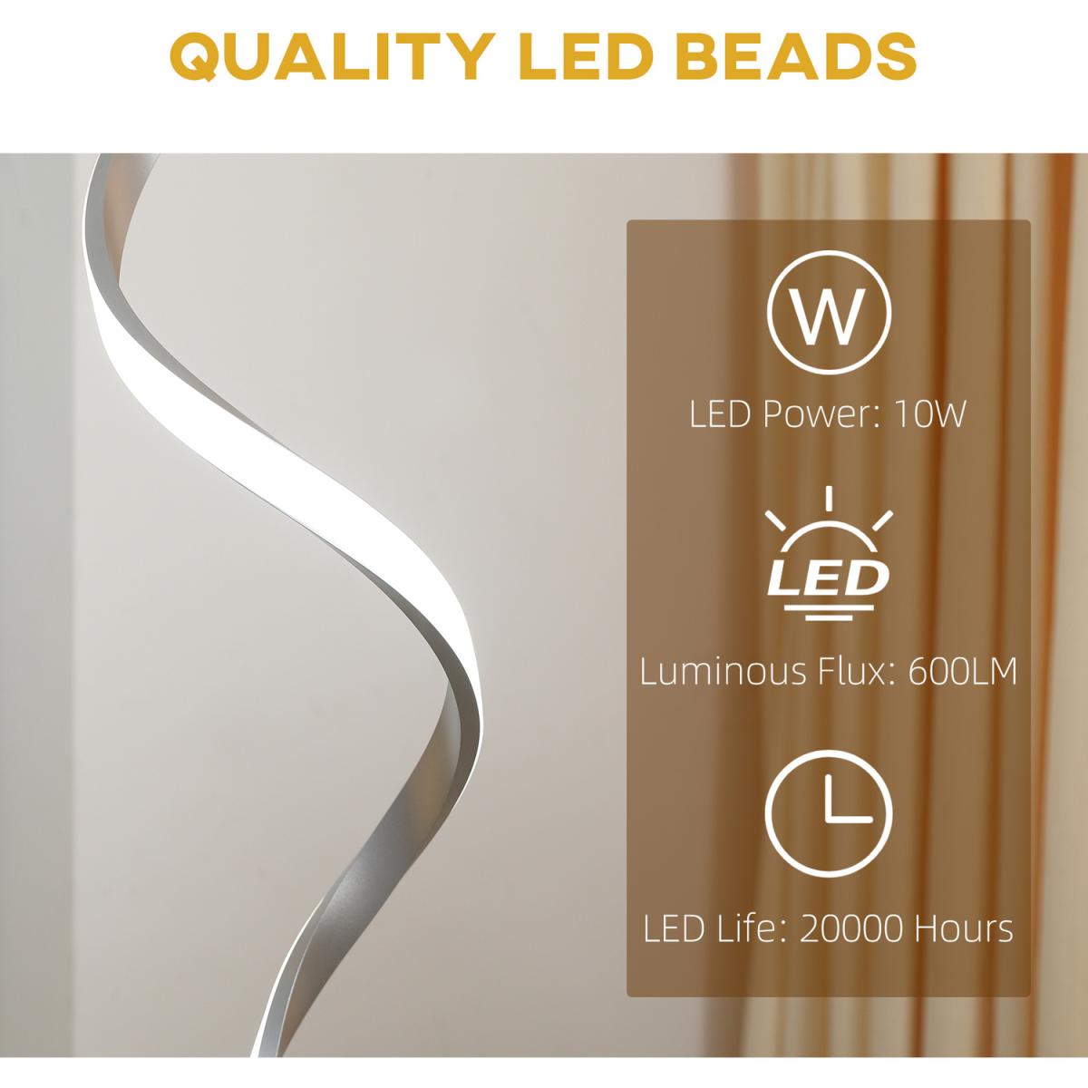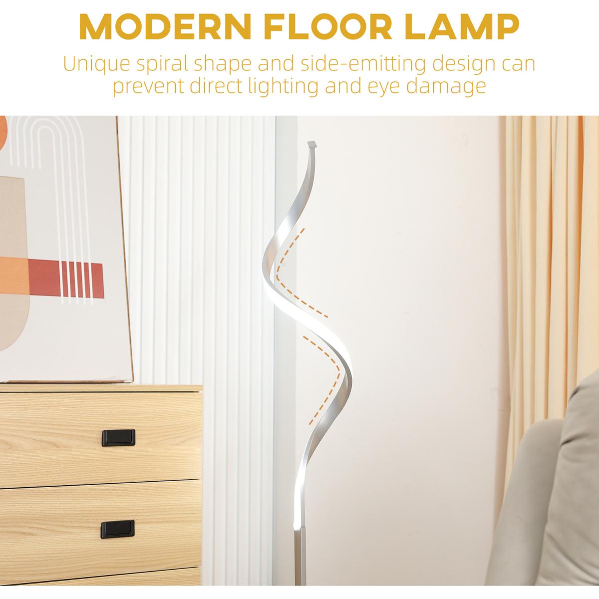 Modern Spiral Floor Lamp Dimmable Standing Lamp for Living Room - Silver