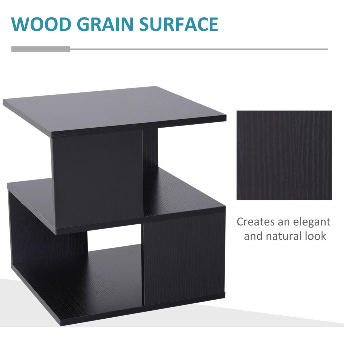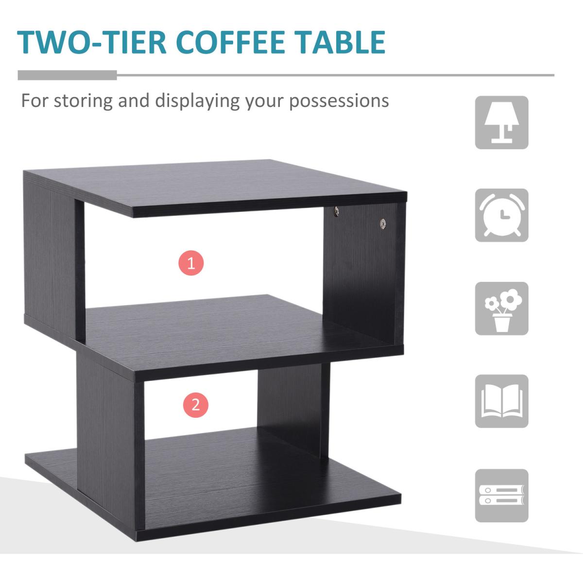 Invite unique style into your home with this side table from HOMCOM. Made from thick particleboard in a sleek finish, it is crafted into a modern design which is a great focal point for living rooms and bedrooms and its two-tier open design makes it a great storage option for a wealth of possessions. With a smooth surface finish, it is easy to clean and maintain, making it great for those with busy lifestyles.
