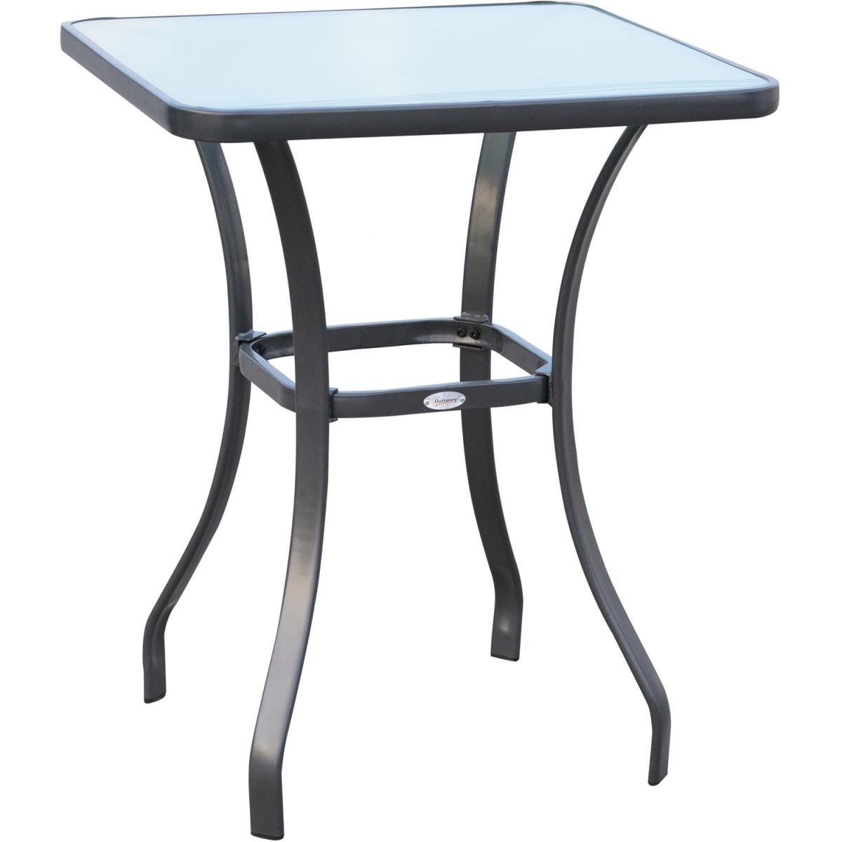 This square bar table made using a metal structure and glass top. The glass top is easy to clean, and the whole unit is lightweight to make it easy to move around if required. It can be used both indoor and outdoor and is easy to keep clean and maintain.