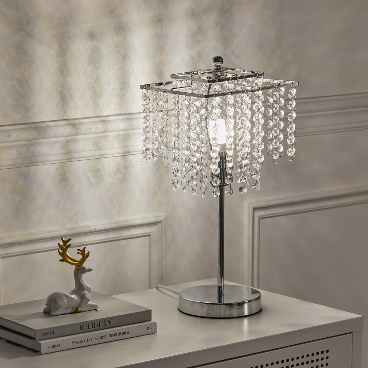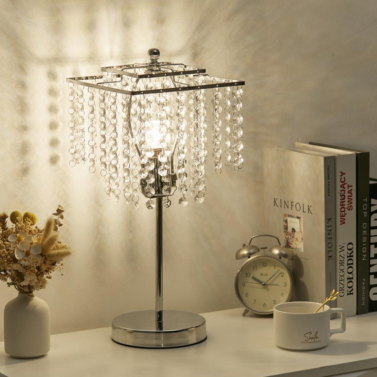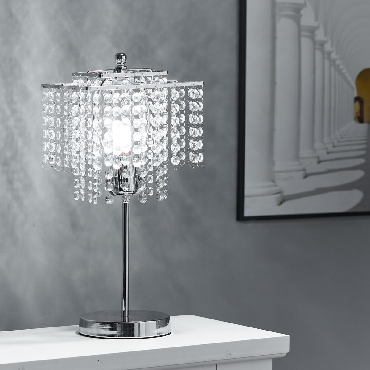 Light up your home in luxury style with this table lamp. British Standard Plug, maximum 60. W, E27 bulb base(bulb not included). The bright lights are scattered in your room, making you feel like you are in a sea of diamonds. The crystal table lamp has a stable round base, it can be conveniently placed on the tabletop or bedside to perfectly decorate your home. Finished with a button switch to turn on and off easily. The sparkling crystal table lamp combines modernity and a retro feel. It can be used by yourself or as a gift to friends and relatives at various festivals. A beautiful crystal lamp is a good choice for decorating a bedroom, living room, kitchen and study room.
