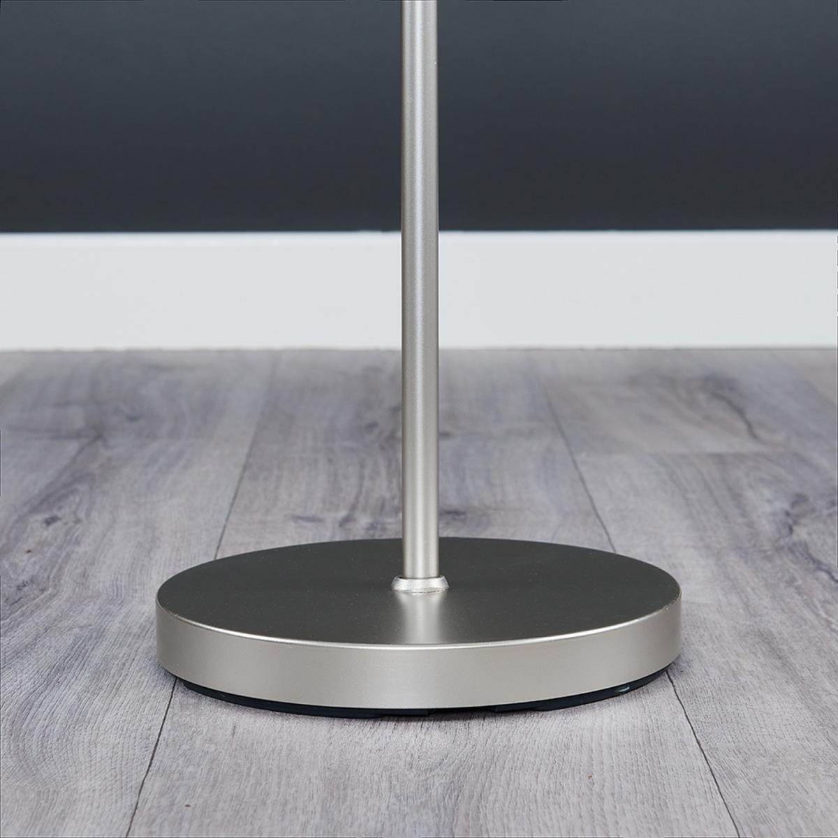 I really like this floor lamp for its sleek brushed chrome finish and neutral cream shade, which makes it versatile for contemporary or minimalist interiors. It works particularly well in living rooms or reading corners where a subtle, modern touch is needed. For styling, consider pairing it with neutral or muted tones for a cohesive look, or use it to add a metallic accent in a space with layered textures. Practical tips include placing it next to a sofa or armchair for functional lighting, and complementing it with other chrome or metallic accents to create a unified design scheme. Its simple design also makes it ideal for smaller spaces where understated elegance is preferred.