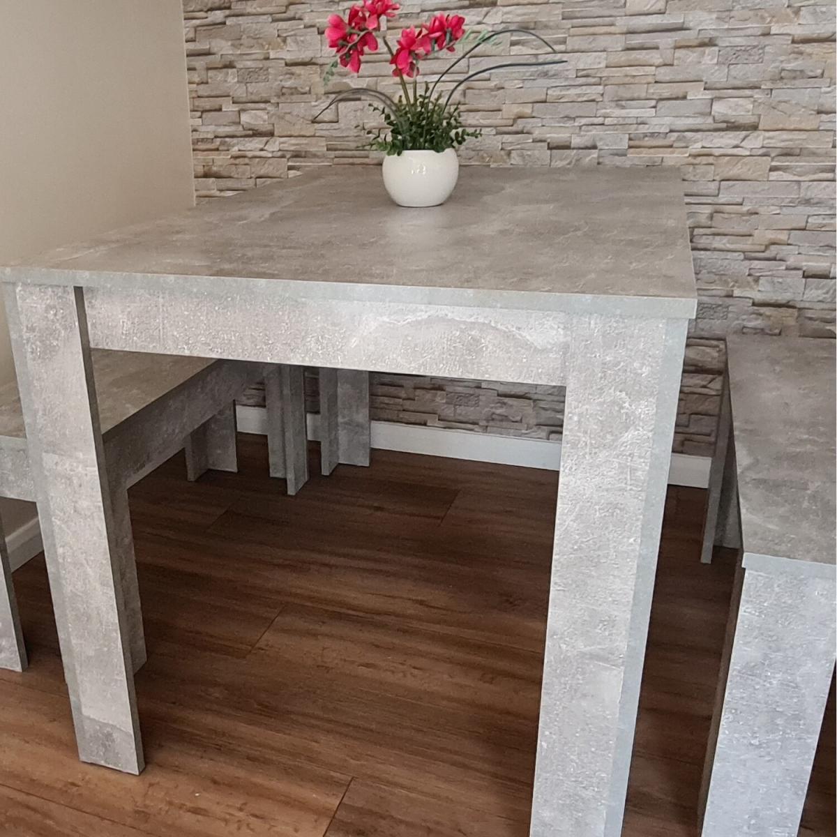 Transform & brighten your dining area with this stunning wooden stone grey dining table. The table is made from wood and has a melamine laminated light stone grey natural wood grain finish which looks great and is easy to wipe clean.