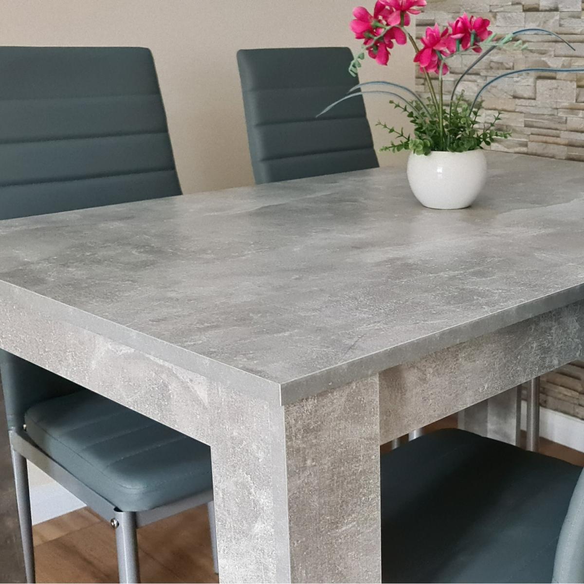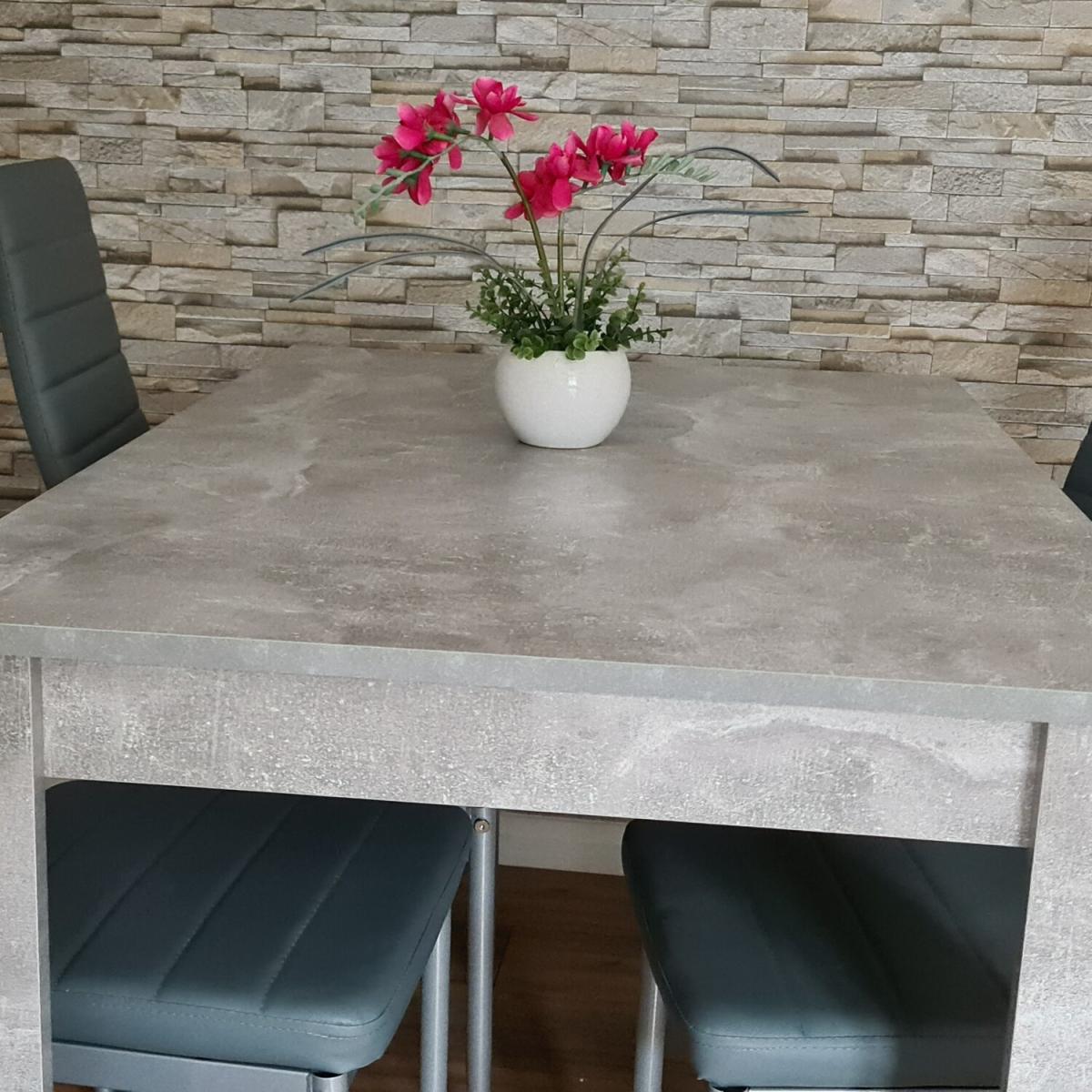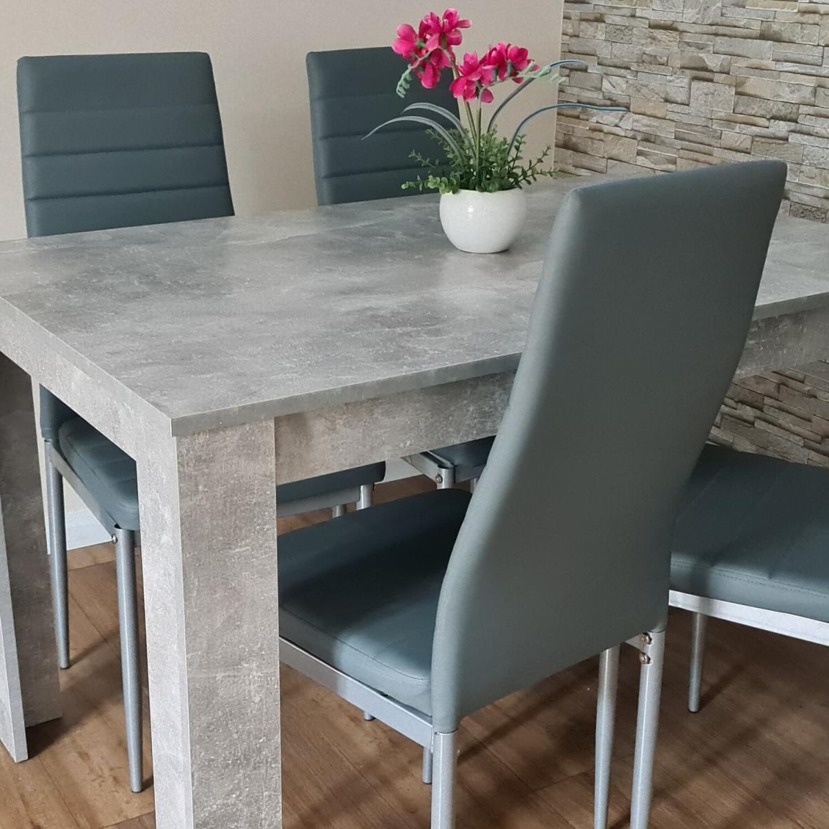 I love this grey stone table set with its sleek, contemporary look and durable finish - perfect for both everyday family meals and entertaining guests. Its neutral colour palette makes it versatile across various interior styles, from modern minimalist to industrial chic. When styling, consider adding colourful or textured placemats and cushions to soften the metal chairs, or pair with warm lighting and natural textiles for a cosy dining atmosphere. The stone grey tone helps conceal any minor stains or marks, making it a practical choice for lively households. Overall, this set works well in open-plan kitchens or dining rooms that benefit from a clean, understated aesthetic.