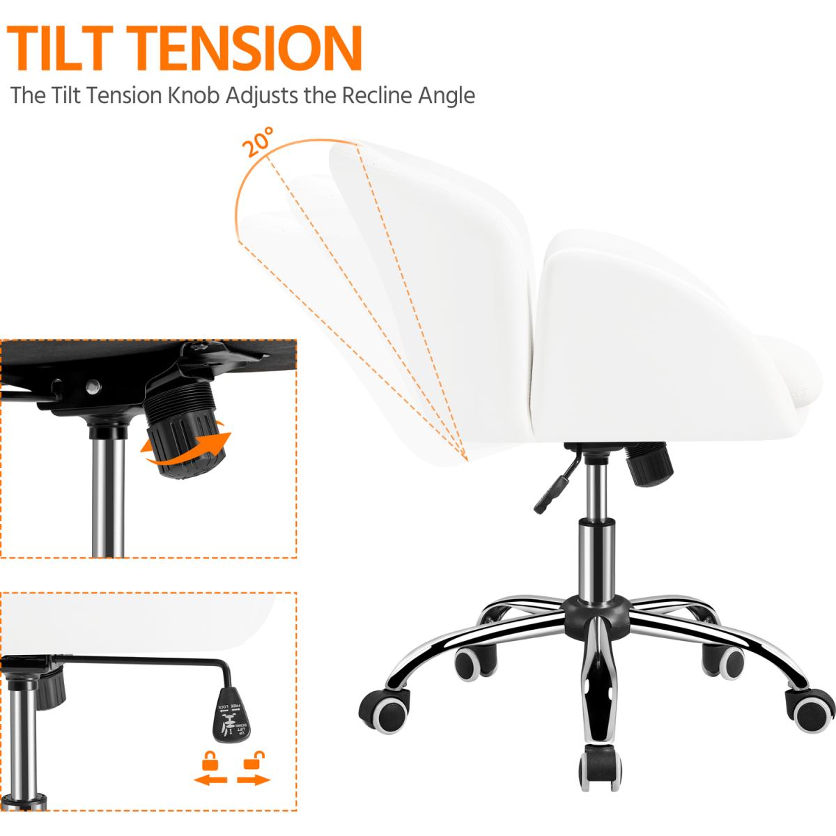 Silky velvet and soft foam make this task chair comfortable to sit a sturdy metal foot base and five multidirectional casters allow you freely move from one work task to another. With an SGS-Certified pneumatic cylinder (CLASS 2), you can use the adjustment lever to lift the chair to 81.5 cm or push it down to 72cm. The tilt tension knob can help you recline this chair within the angle range of 20 degrees. This mid-back armchair's flower petal design provides a comfortable sitting experience and decorates your home office flawlessly.